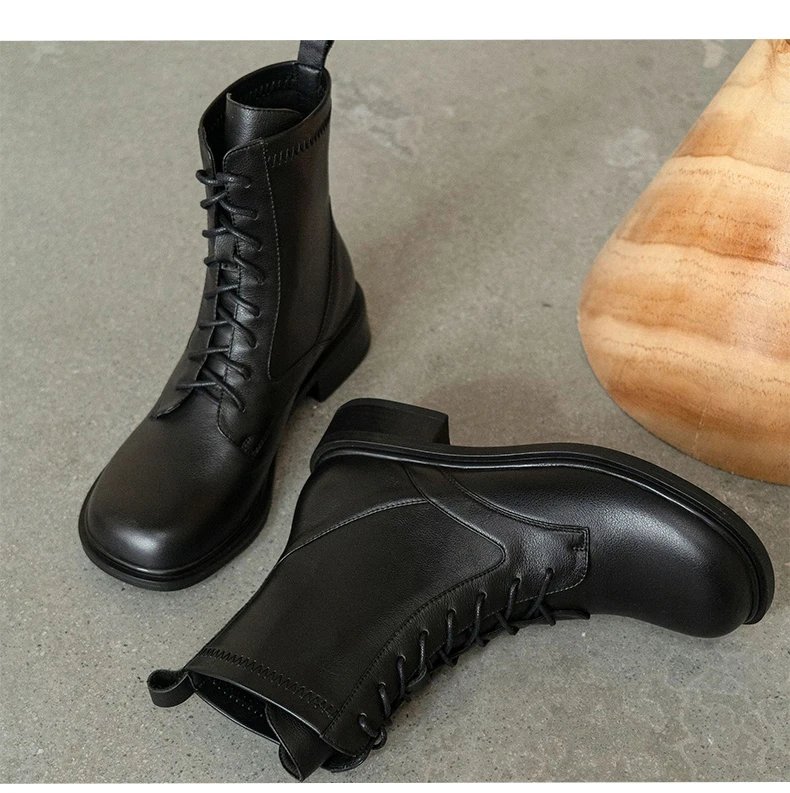 Сапоги женские рыцарские на шнуровке, с круглым носком, в стиле ретро