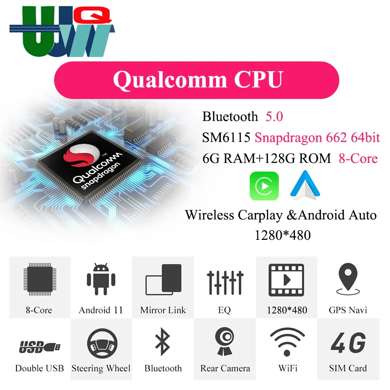 UJQW Android 11 Qualcomm 6G + 128G Авторадио мультимедийный плеер д...