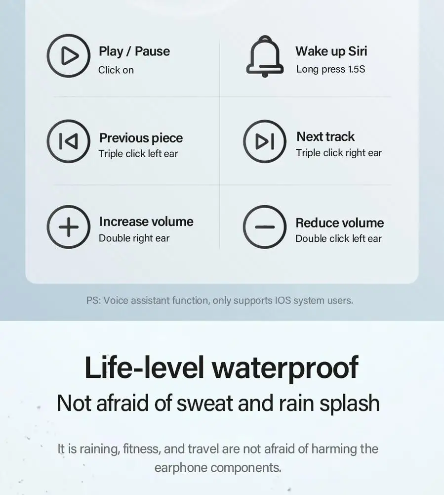 Описание:Название: наушники Bluetooth 5,0Цвет черный, белыйНошение Тип половина-in-earМатериал ABS + PCМикрофон ДаВерсия bluetooth V5.0Поддерживаемые профили HSP/HFP/A2DP/AVRCPРасстояние передачи 33 футов (10 м)Частотная характеристика 20-20 кГцЕмкость аккумулятора: 40 мАч * 2Зарядное устройство: 300 мАчВремя зарядки (ч) 1 чВремя воспроизведения музыки 3 чВодонепроницаемый IP54Зарядный порт Type-CУпаковочный лист:1X TWS bluetooth 5,0 наушники с зарядным устройством1 кабель для зарядки типа C1X Руководство пользователяПримечание: Из-за различных личных причин; Дисплеи, светильник, а также контрастности монитора каждого вас принять во внимание тот факт, быть s светильник разница в цвете между фотографией и фактическими предметами.