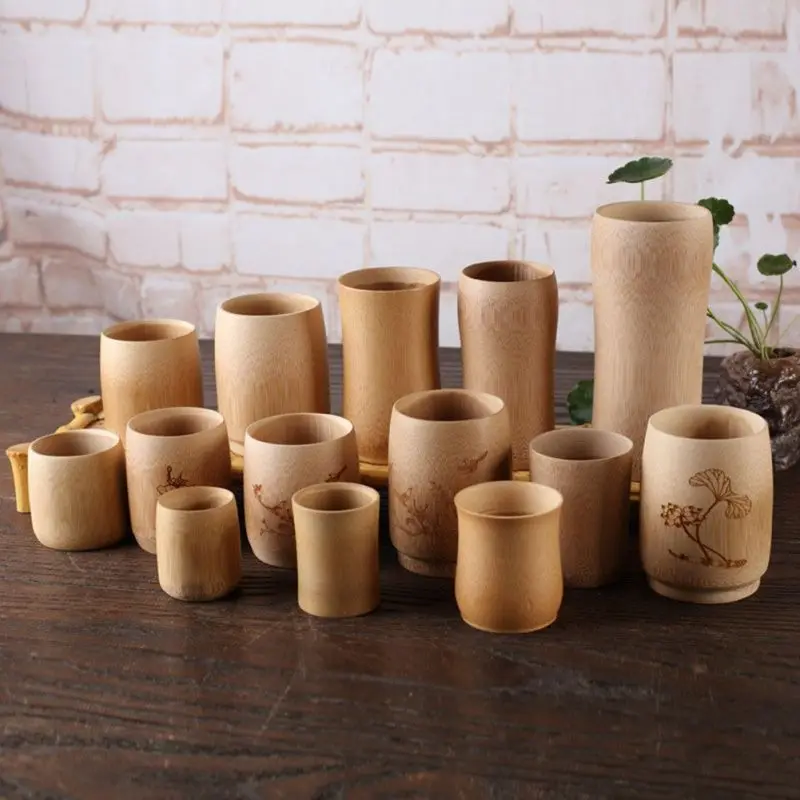 Винтажная чайная чашка из натурального дерева в японском стиле, Бамбуковая Питьевая дюйма, посуда для завтрака, чая, молока
