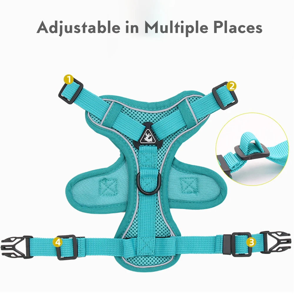 【NO PULL & NO CHOCK】: наш поводок для щенков разработан с 2 прочными металлическими петлями для легкой установки усиленной лямки, которая может обеспечить безопасную повседневную ходьбу вашего питомца. Передний зажим без тяги может помочь щенку изменить направление, когда он неожиданно взволнован, что очень подходит для ежедневных приключений и обратно для повседневных прогулок, пробежек, походов и т. д. Воздухопроницаемая и Нетоксичная сетчатая подкладка используется на передней части груди и обратно равномерно.