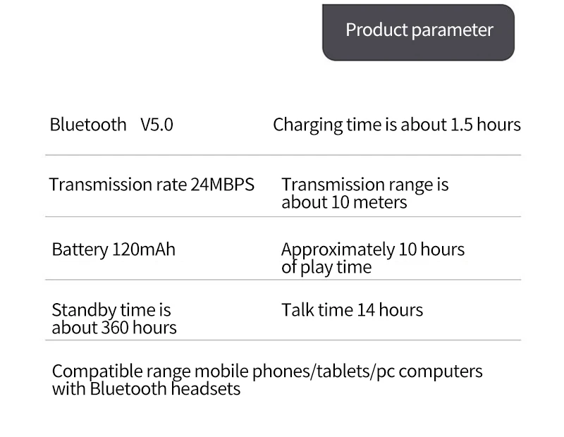 2. [длительный срок службы батареи]-с мощной батареей 120 мА · ч, до 6 часов непрерывного разговора, 8 часов воспроизведения музыки, 120 часов в режиме ожидания и требуется всего 1 час полной зарядки.