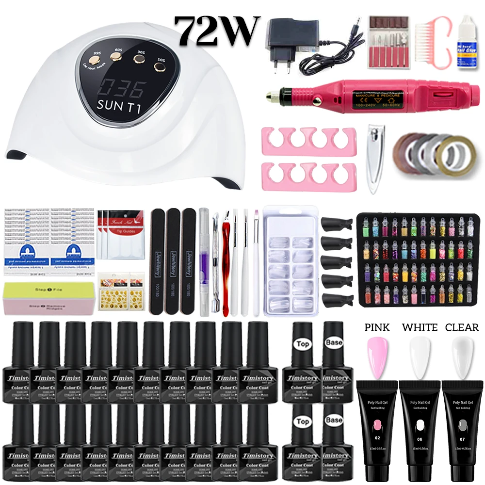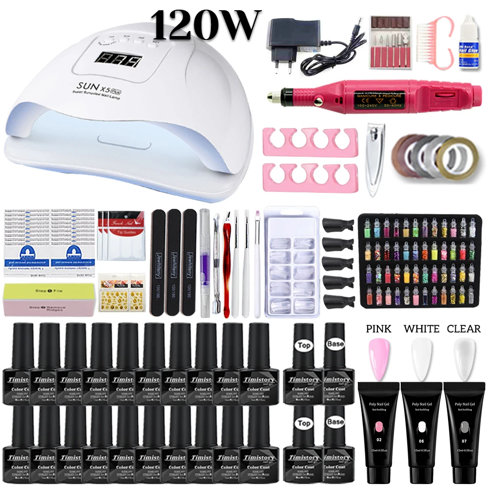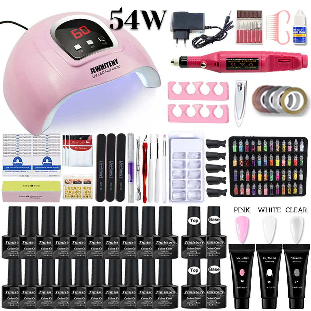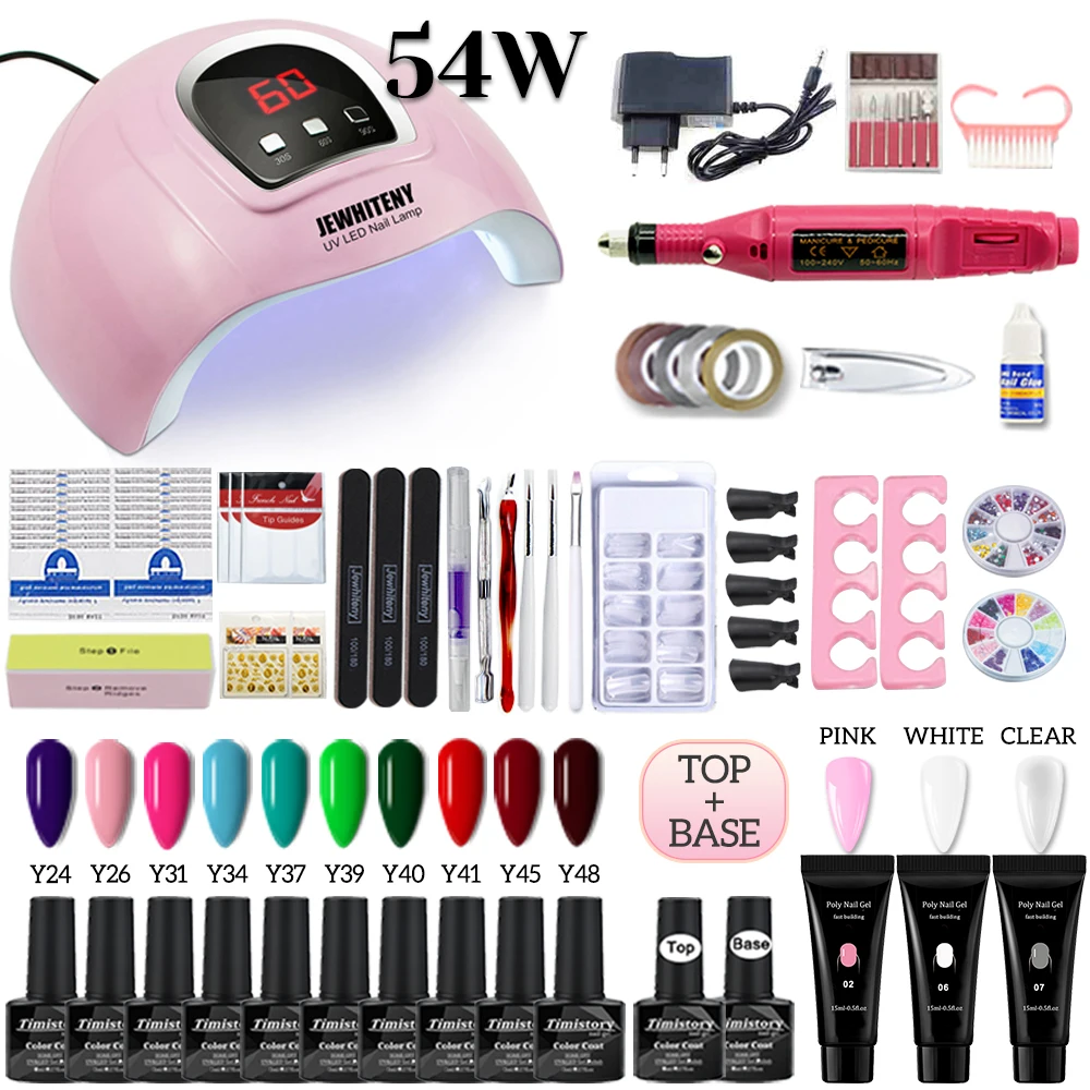 Маникюрный набор со светодиодной сушилкой для ногтей электрическая дрель для ногтей 2010 цветов УФ-гель для ногтей с комплектом гель-лаков инструменты для дизайна ногтей