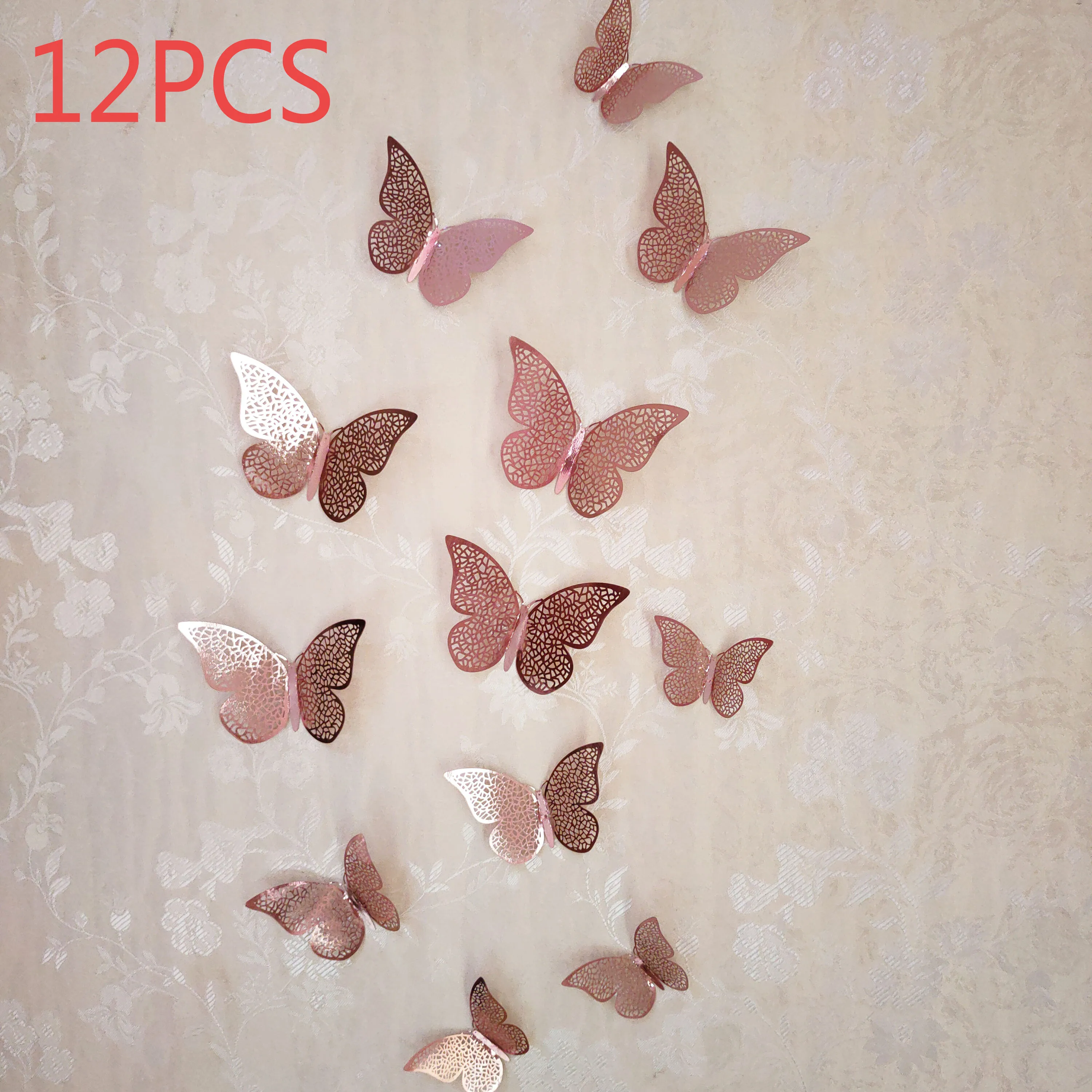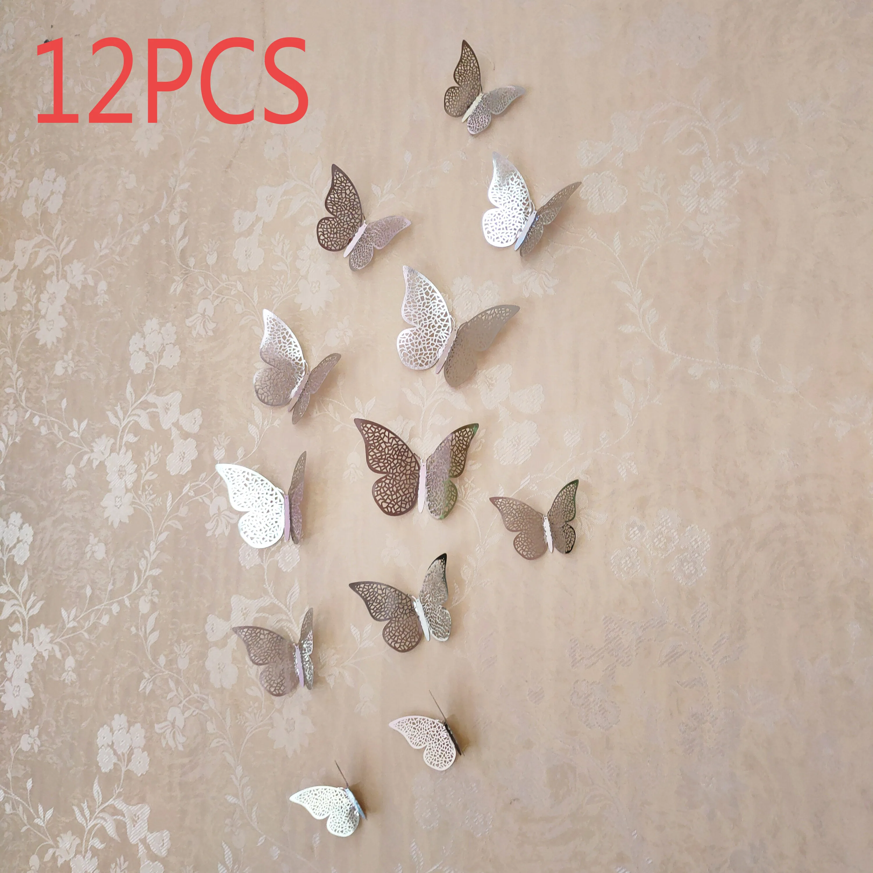 12 шт.компл. из пустотелых 3D наклеек на стену в виде бабочки, укра...