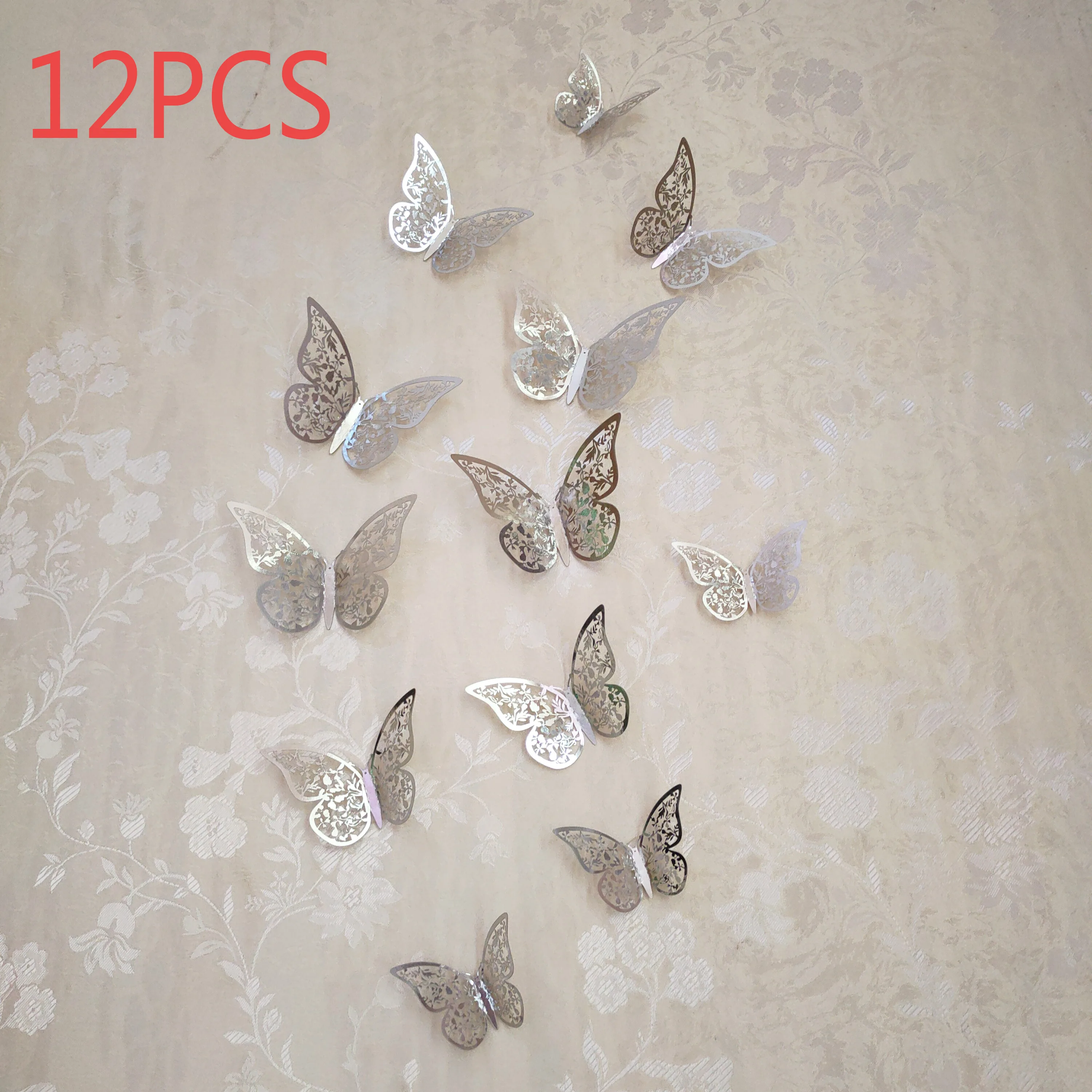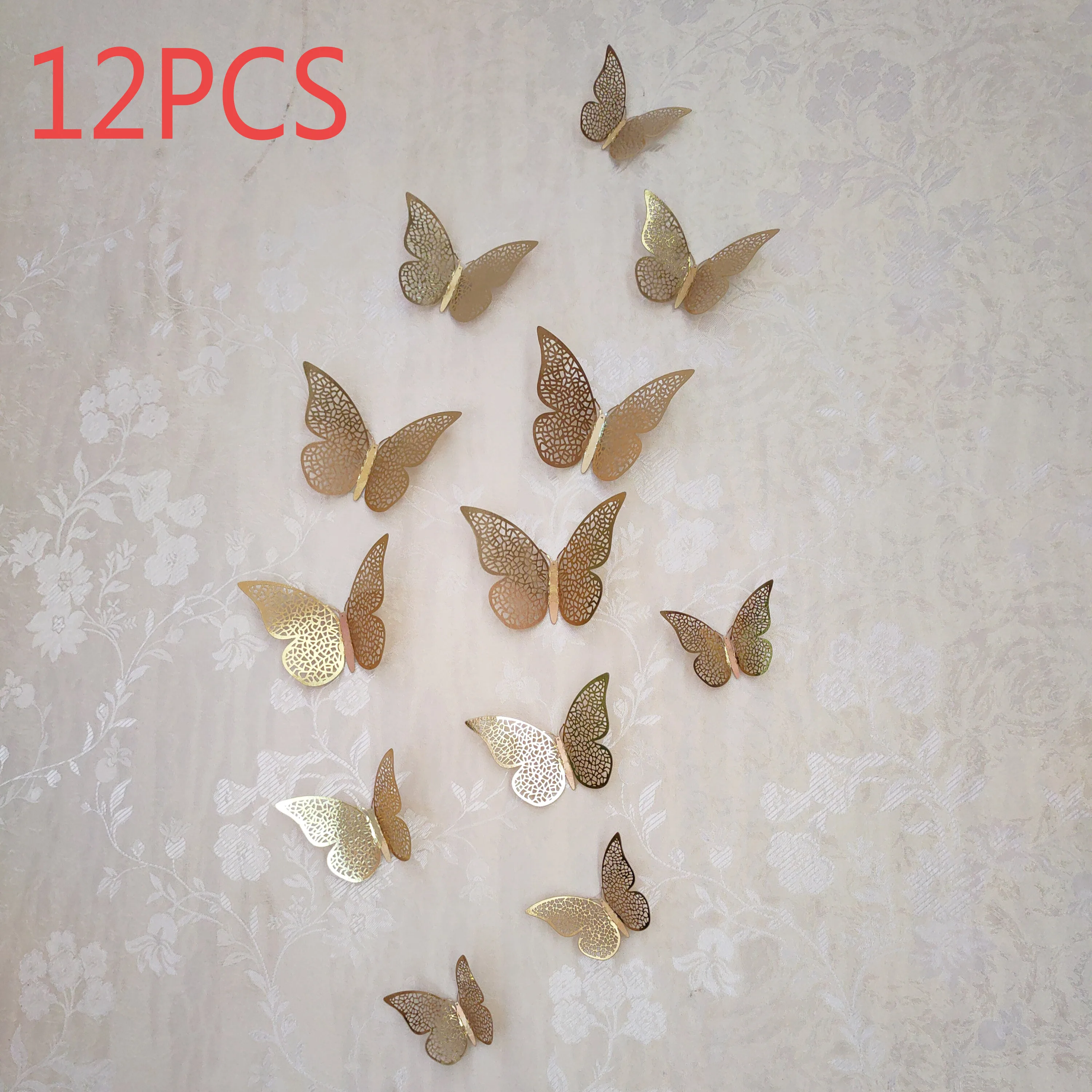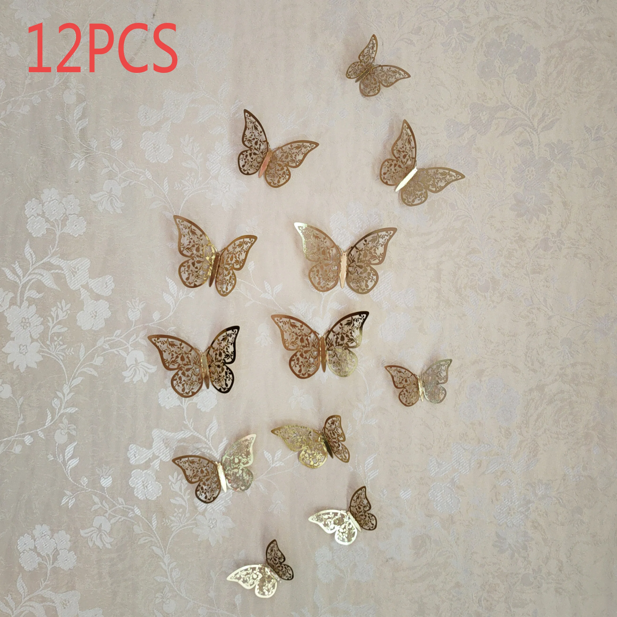 12 шт.компл. полые 3D наклейки на стену в виде бабочки для свадебного украшения гостиной окна домашний Декор золотые серебряные бабочки наклейки