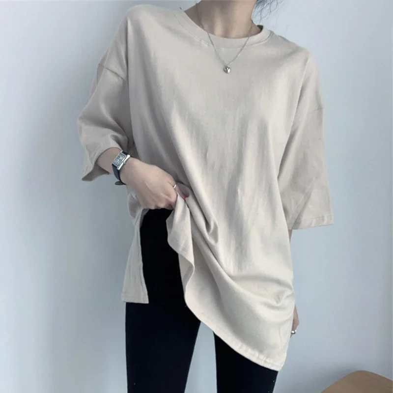 Футболка женская, летняя, однотонная, свободная, с круглым вырезом ...