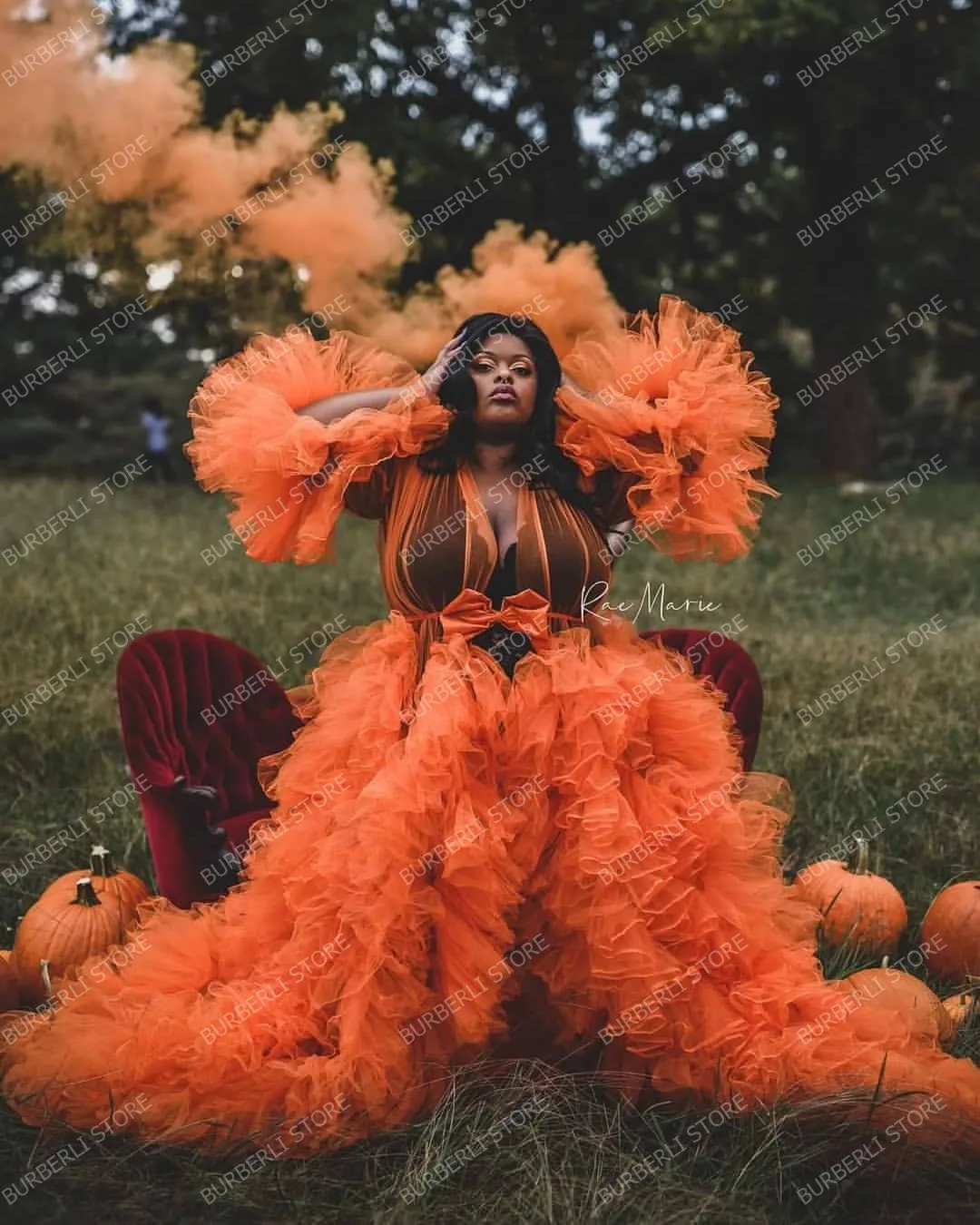 Уникальные оранжевые сетчатые фотообои, очень пышные платья из тюля для вечеринки, длинные женские халаты