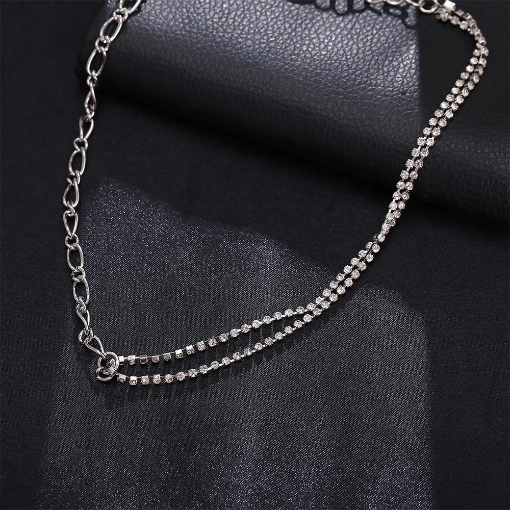 Женское многослойное Ожерелье Стразы, ожерелье в готическом стиле с кулоном-бабочкой, массивное ожерелье серебряного цвета, Ювелирное Украшение в эстетике