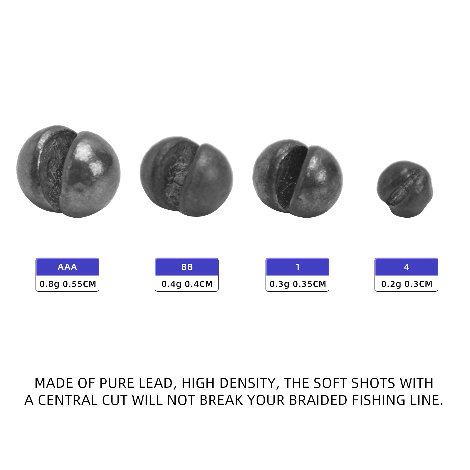 SF Micro Split Shot Lead Combo, съемный поводок для ловли рыбы нахлыстом, чистые свинцовые грузила, рыболовные снасти (112 шт.4 размера1 коробка)
