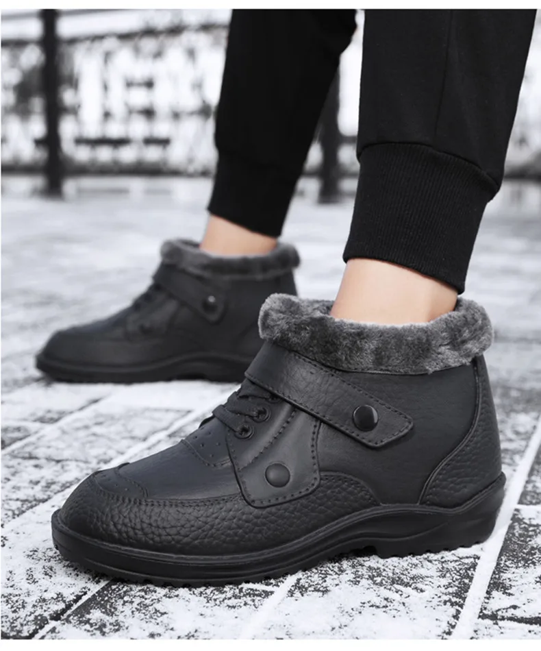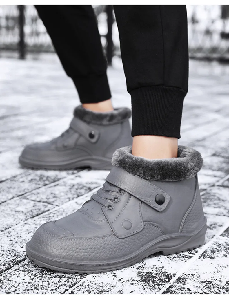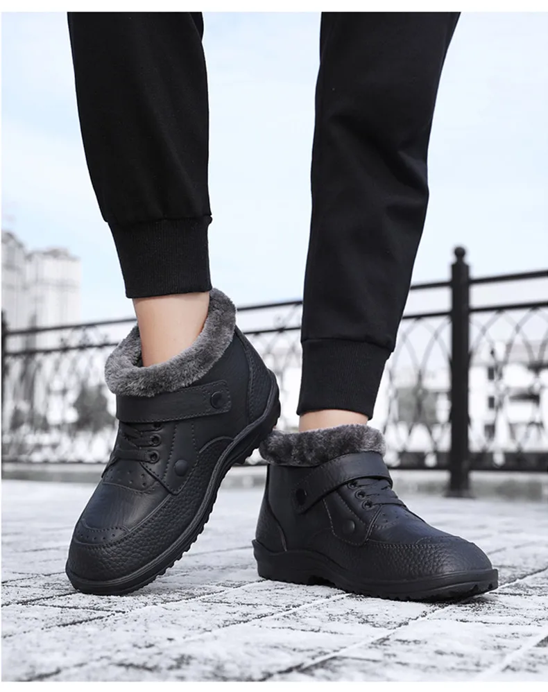 Мужские зимние ботинки без шнуровки, теплые меховые ботинки из иску...