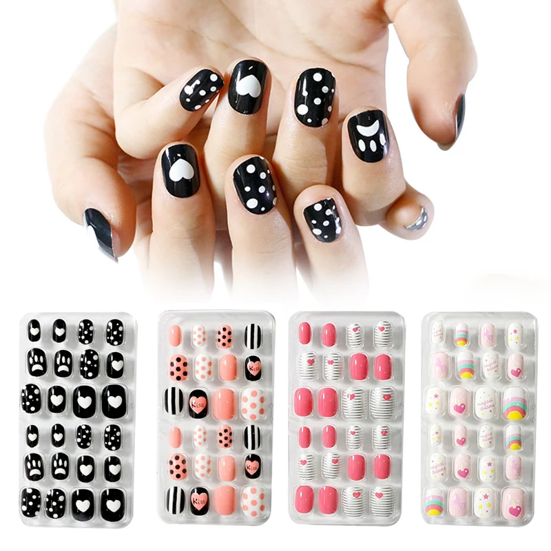 24 шт./кор. детская покрытие накладные ногти нажмите на самоклеющиеся ногтей Маникюрные Типсы конфеты накладные ногти нейл-арта украшения для детей