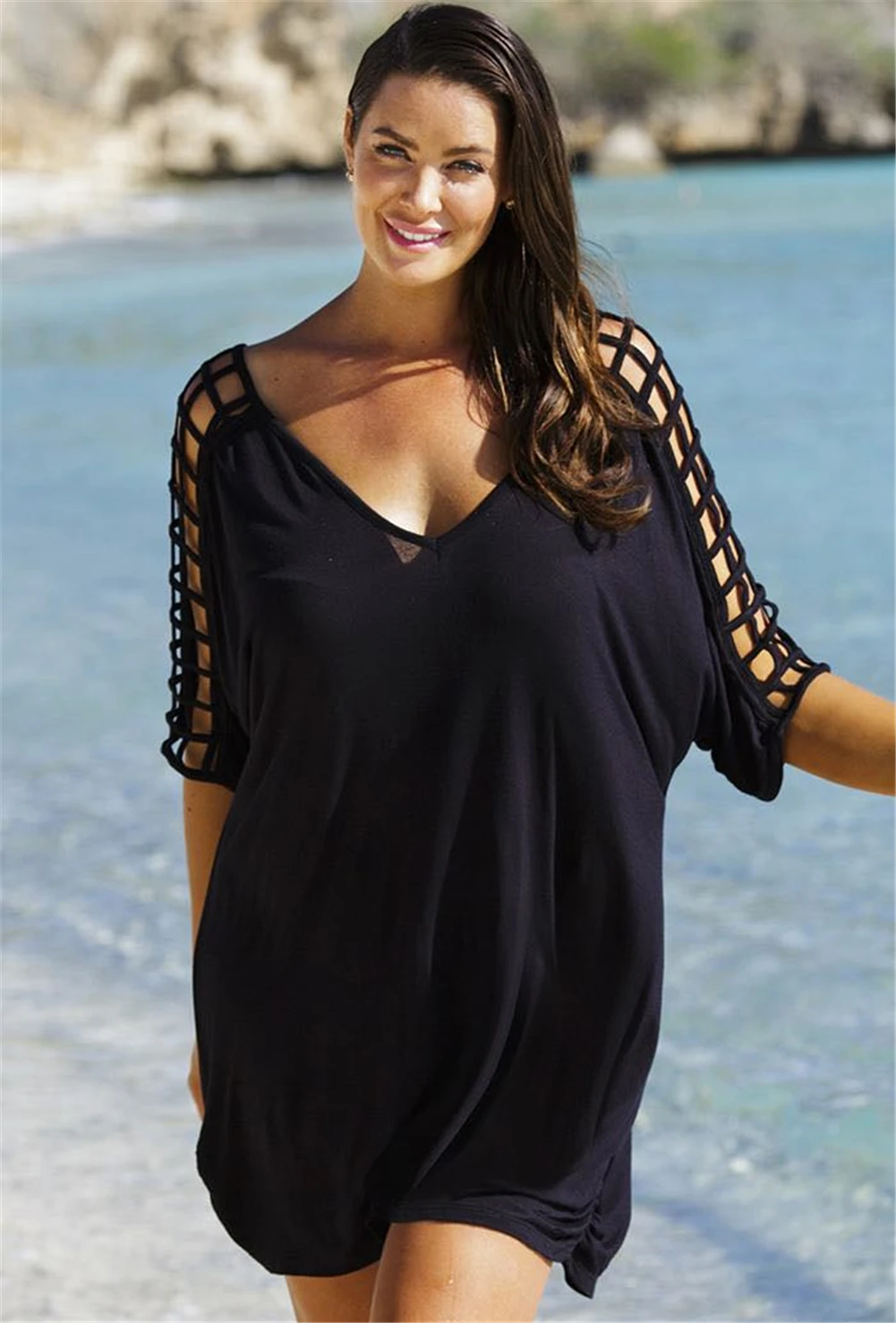 Сексуальная Женская Летняя Пляжная накидка, пляжная одежда, саронг, женская пляжная одежда, кафтан, свободное платье, размера плюс