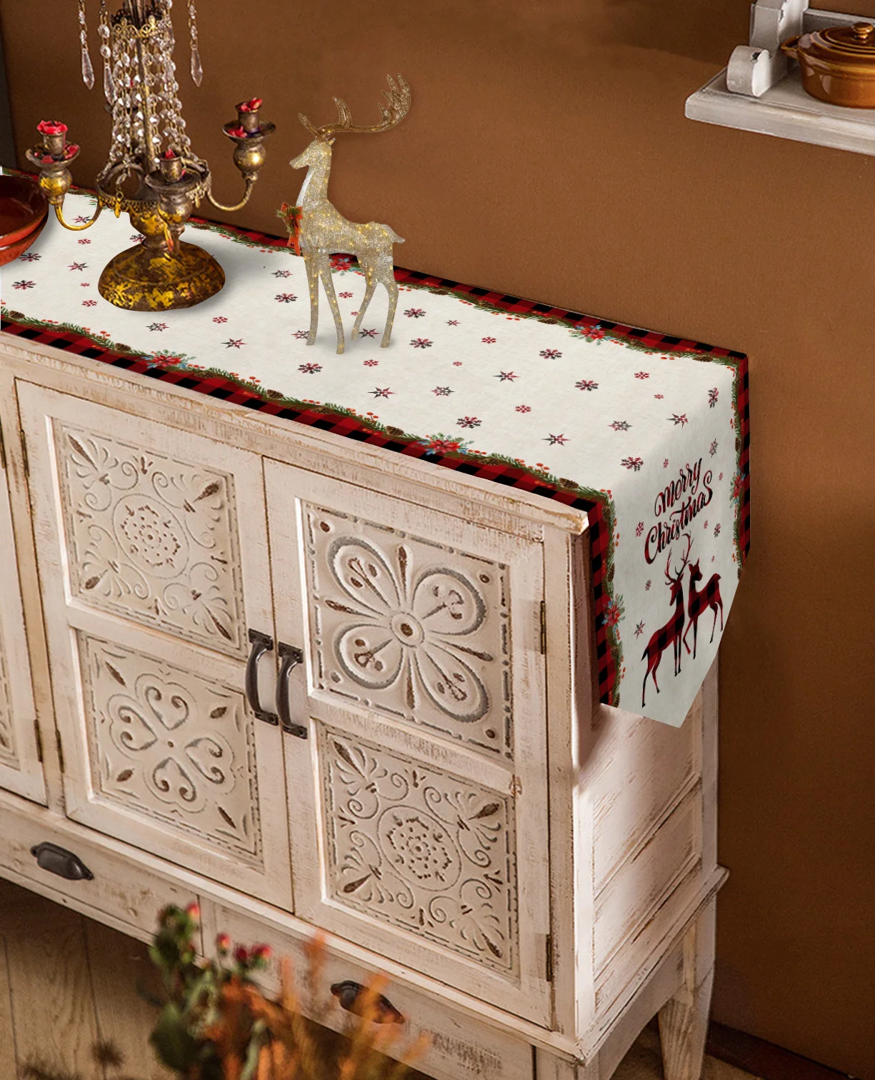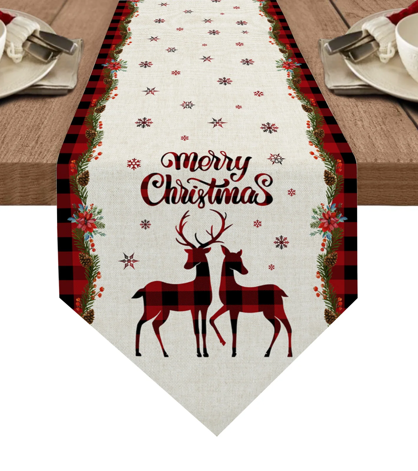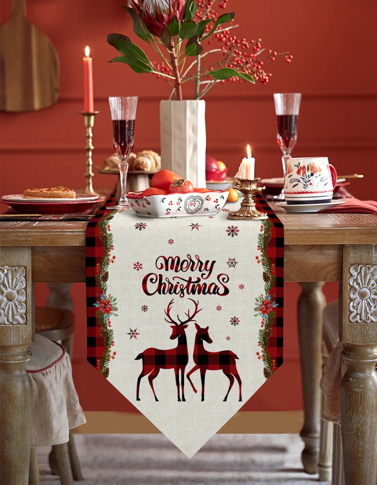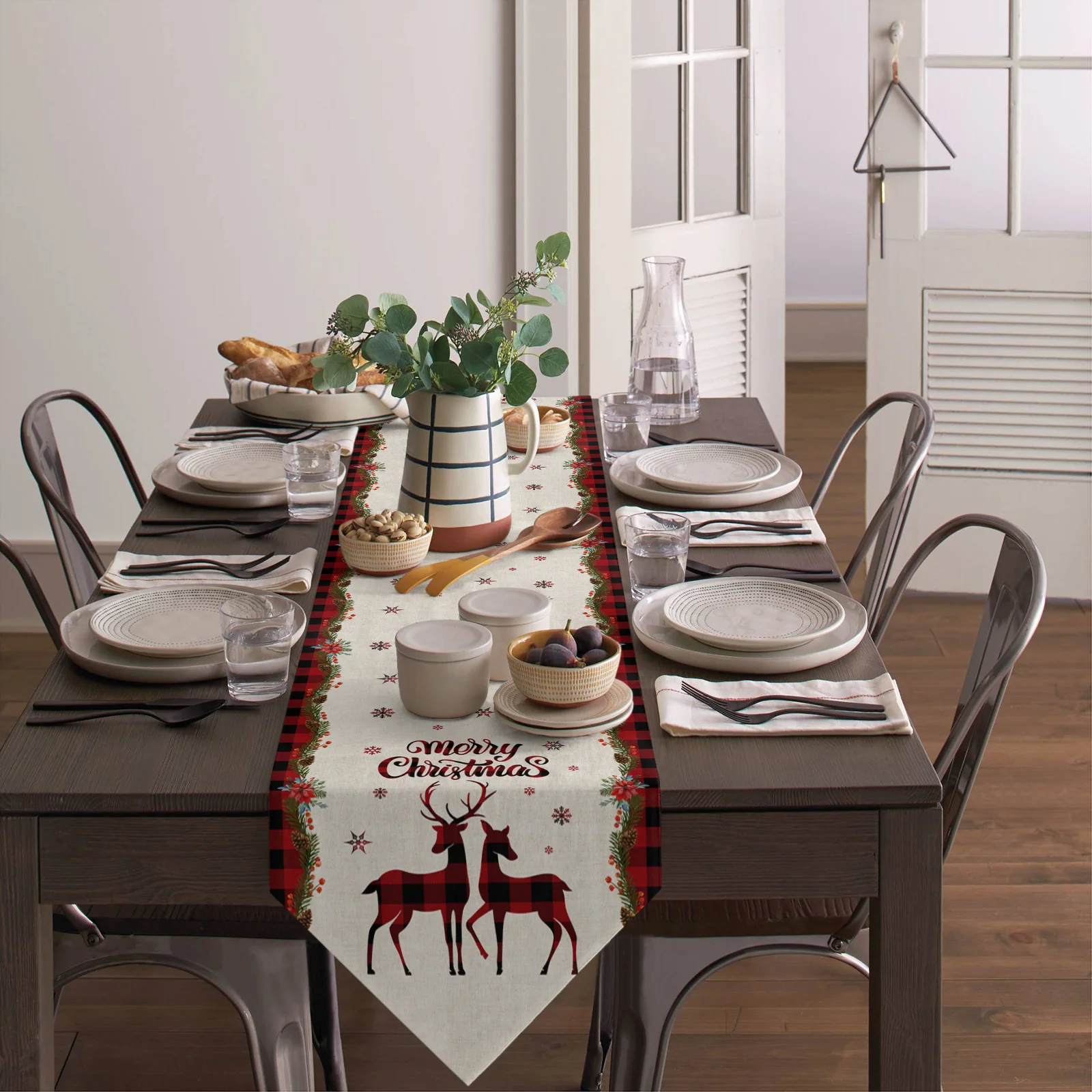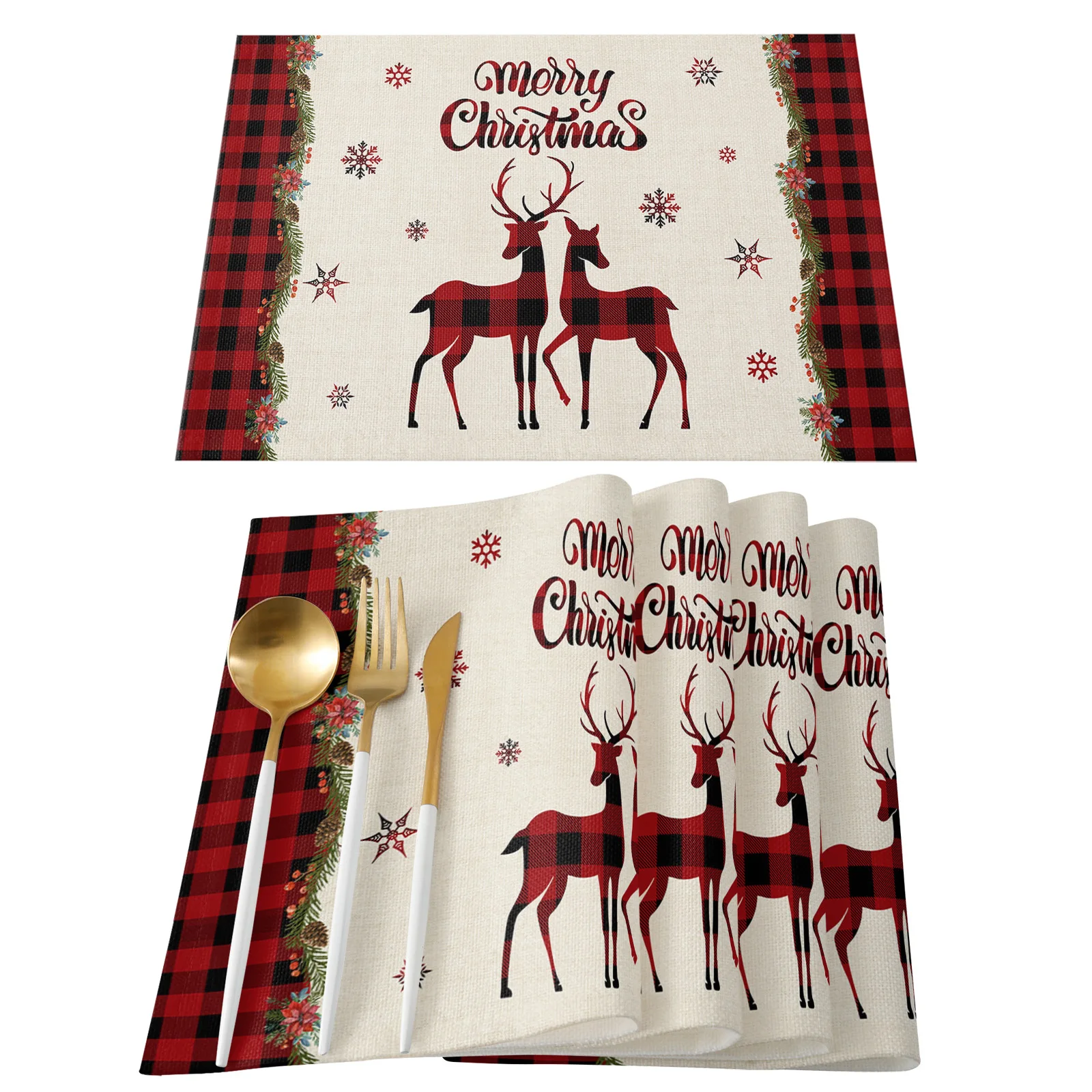 Рождественские снежинки, лось, красные клетчатые скатерти, свадебное украшение, скатерть для стола, рождественские украшения для дома, скатерть для стола