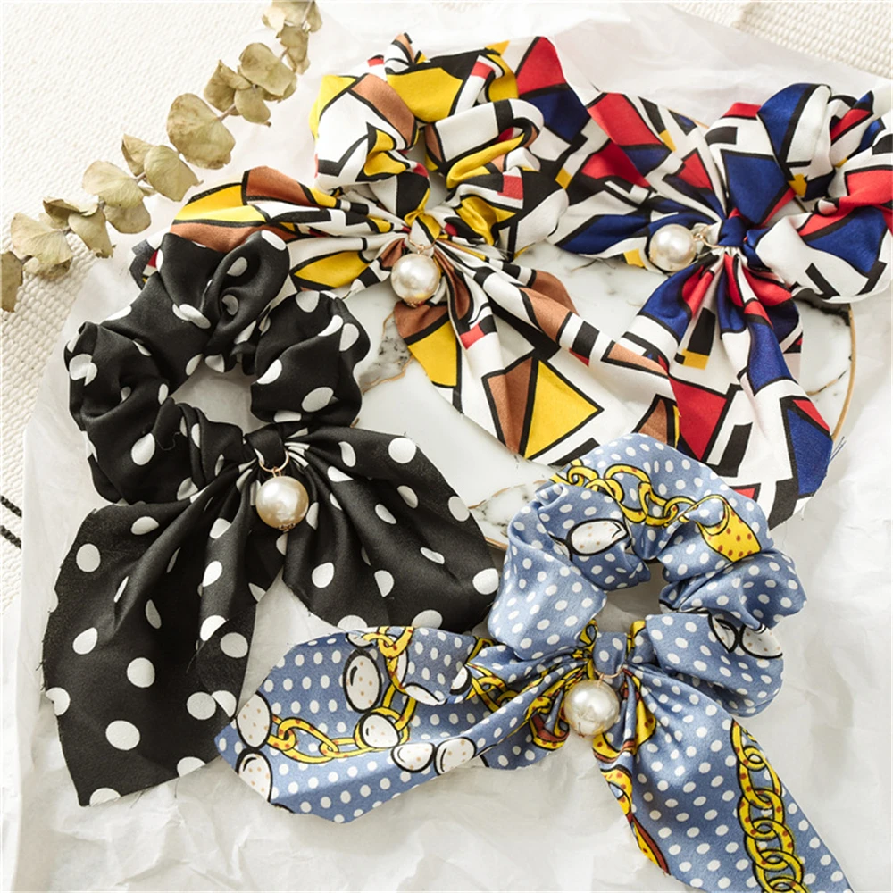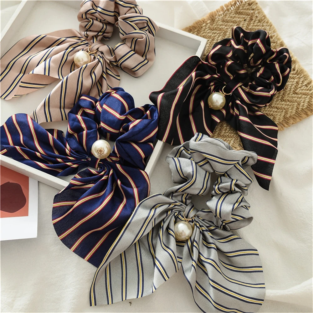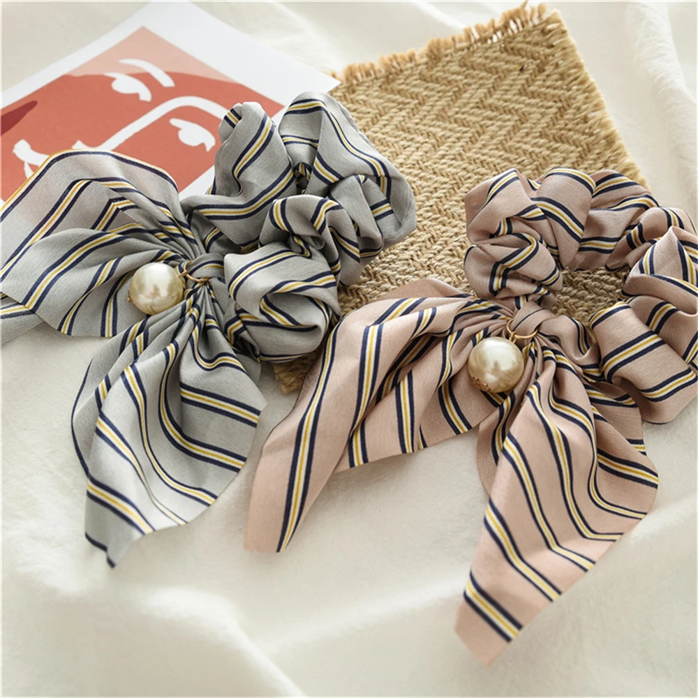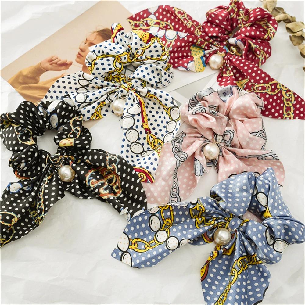 Новинка, заколка для волос с жемчужными полосками, Женская обруч для волос в горошек, галстук для волос, аксессуары для волос