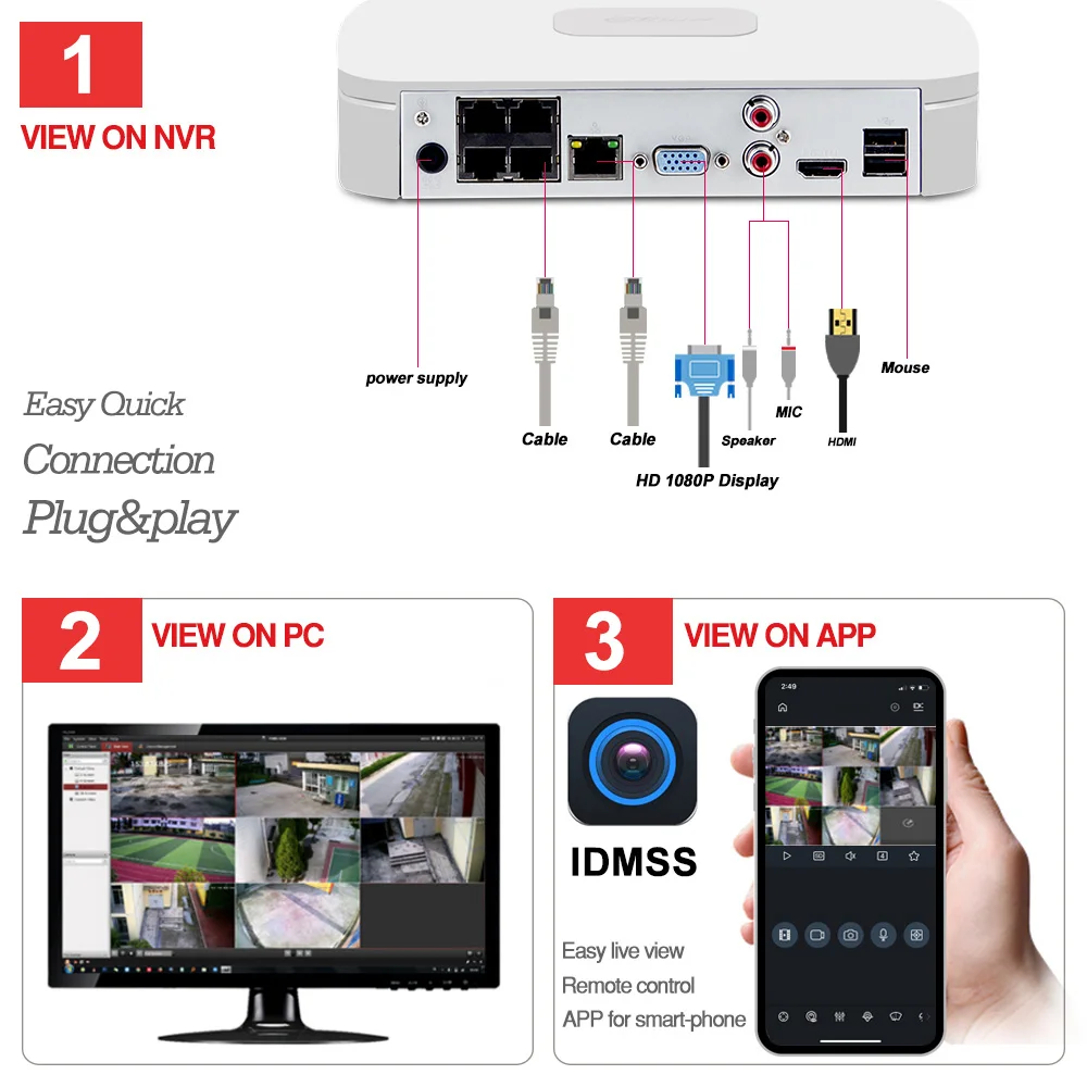 Набор Dahua для системы видеонаблюдения Dahua, сетевой видеорегистратор 4 канала, 4 МП, система наблюдения с удаленным просмотром