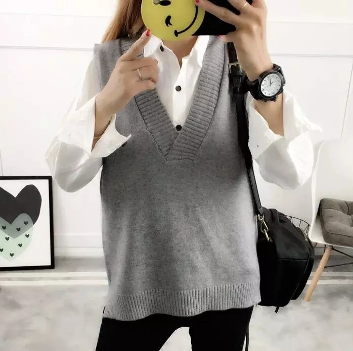 Женский свитер, жилет, осень 2021, полосатые вязаные свитера без рукавов с V-образным вырезом, универсальные свободные свитера в Корейском стиле преппи