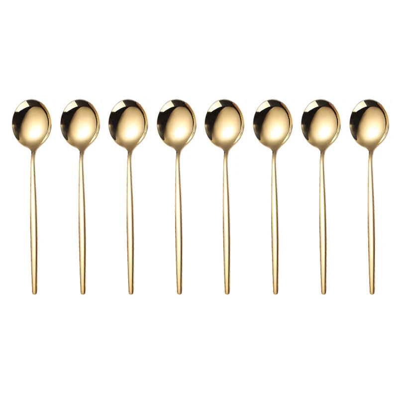 Столовые приборы из нержавеющей стали, столовая ложка круглой формы с длинной ручкой, 8 шт.компл. 304
