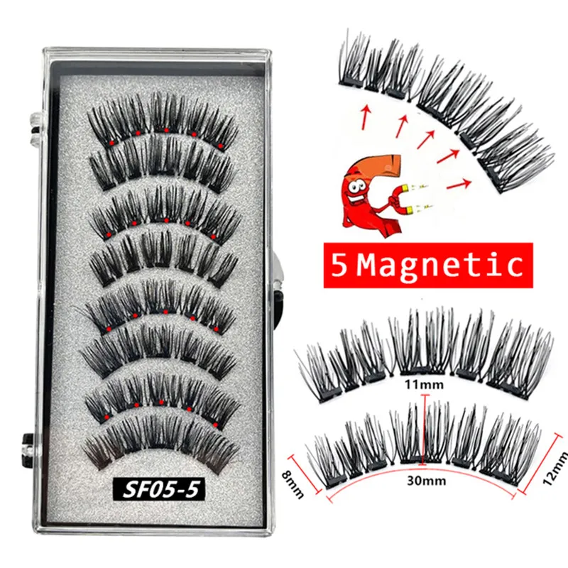 4 пары, 5 магнитов, 3D Магнитные Накладные ресницы ручной работы, искусственные трафареты, магнитные натуральные норковые ресницы с пинцетом
