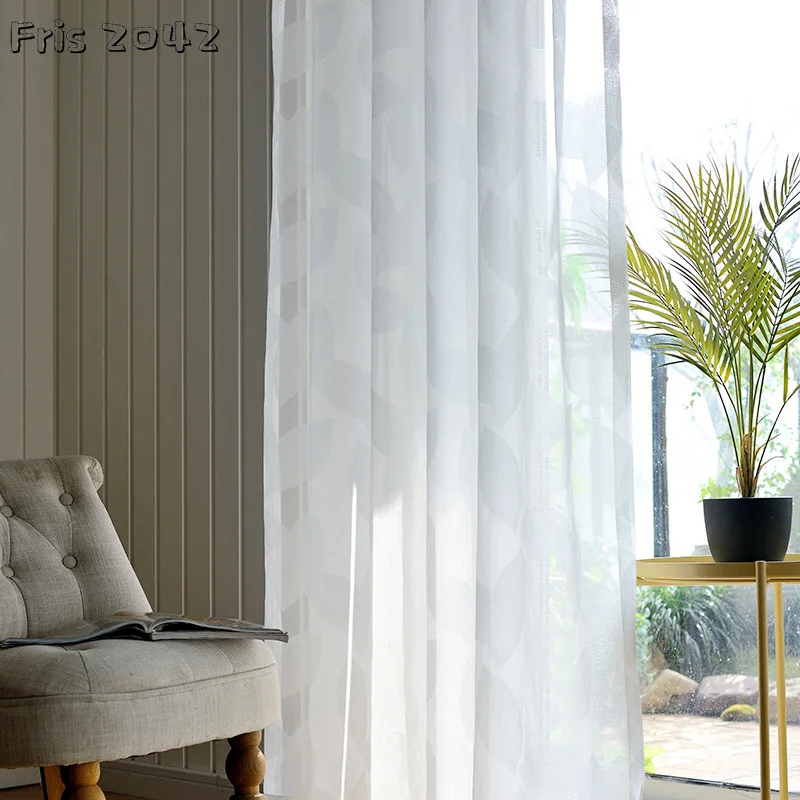 Тюль с белыми листьями, современный простой однотонный жаккардовый прозрачный тюль с перегородками на заказ для гостиной, столовой, спальни