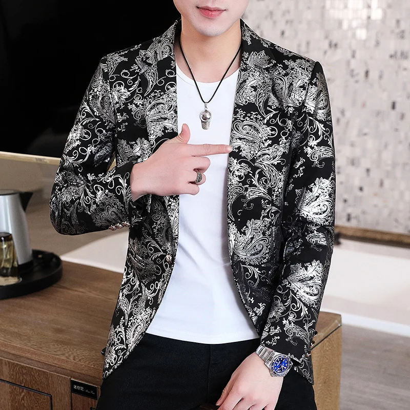 Мужской Блейзер, Новинка весна-осень 2021, модный Мужской приталенный Блейзер с принтом, одежда для свадебной вечеринки, блейзер с золотыми пайетками для мужчин