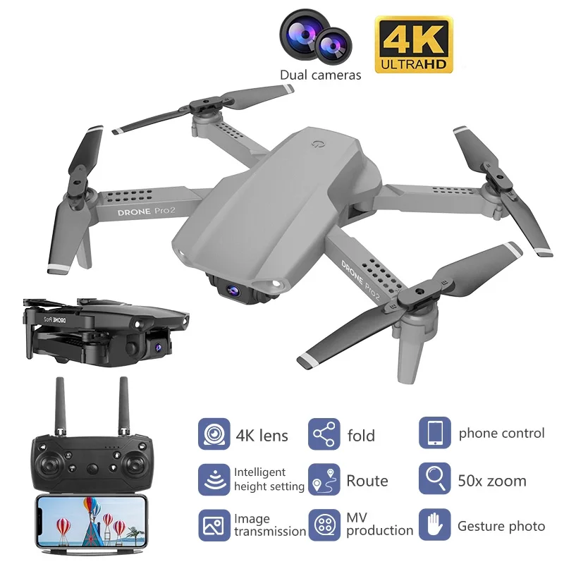 1. Дрон имеет разрешение 4k/1080P/720P и может снимать изображения и видео высокой четкости. Двойные камеры 4K можно свободно переключать и захватывать самые реалистичные цвета в природе