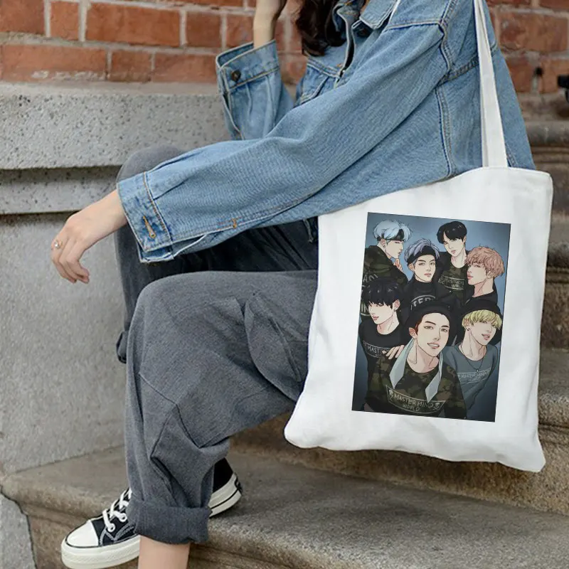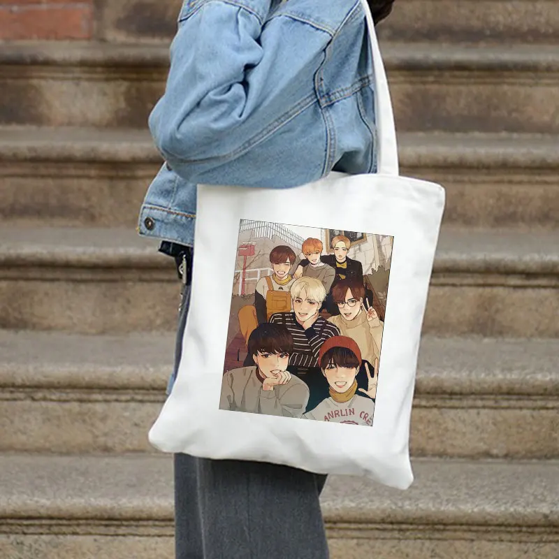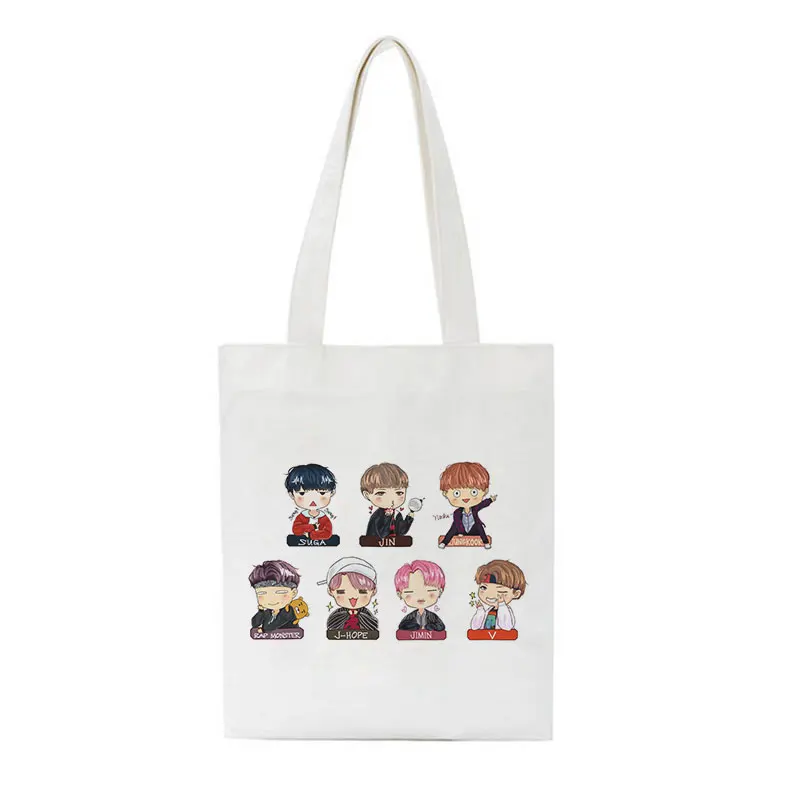 Мультяшные холщовые сумки Bangtan Boys V Jin Jungkook Suga Harajuku, женские сумки через плечо Rm J-hope Rm Ulzang, мультяшная сумка через плечо