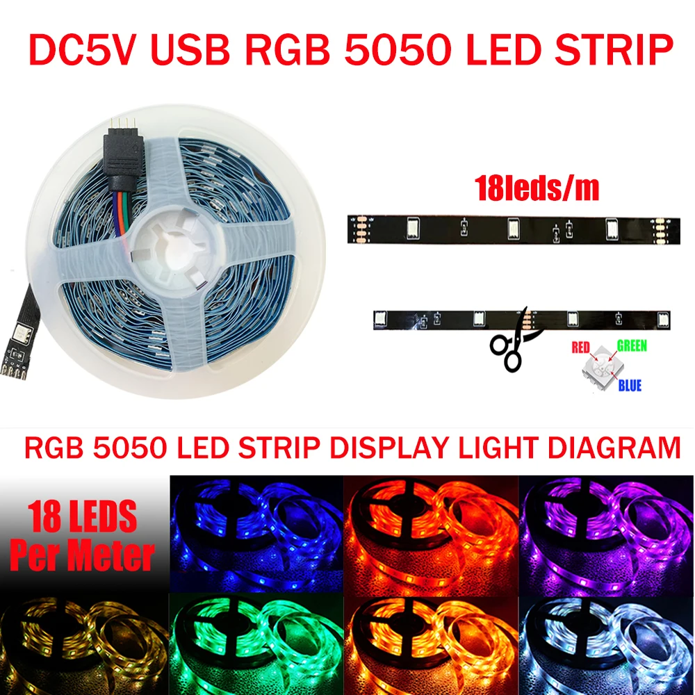 Светодиодная лента RGB 5050 с Bluetooth-управлением, 5 В, USB