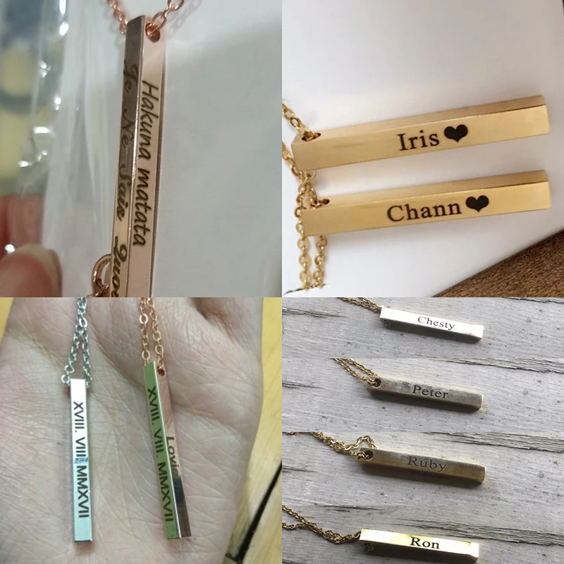 Ожерелье Auxauxme с квадратной гравировкой имени для женщин, чокер из нержавеющей стали с Четырехсторонней гравировкой, подарочное ювелирное изделие