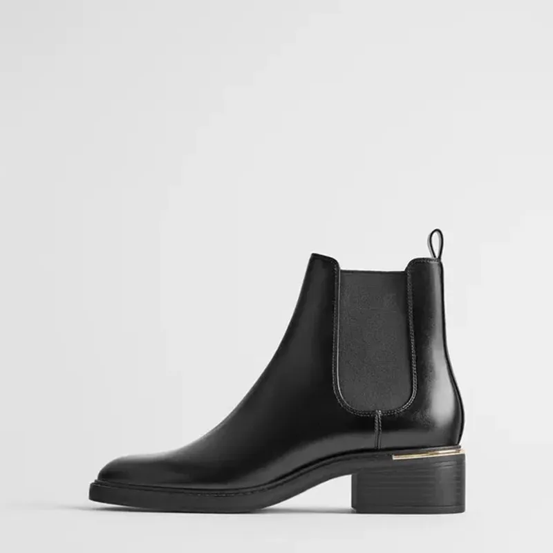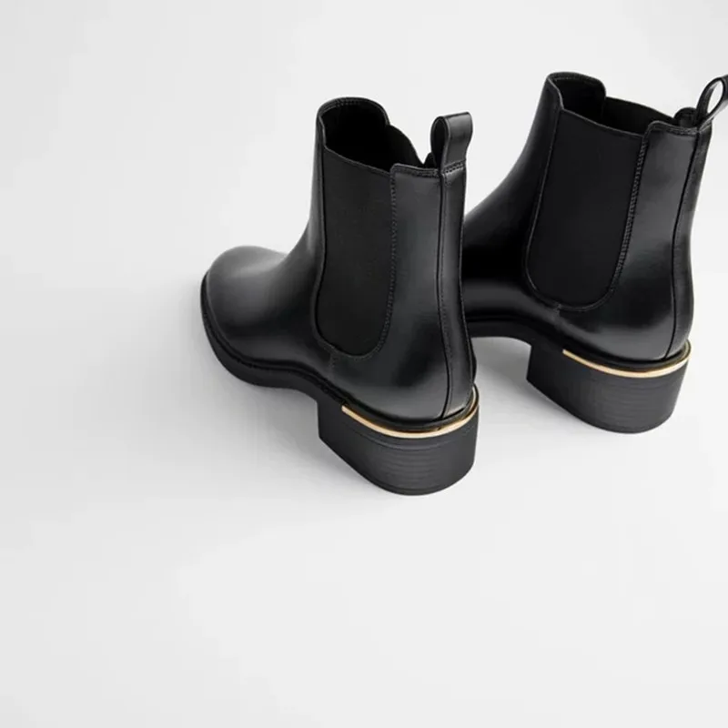 Женские ботинки-Челси ZA, черные эластичные ботинки на среднем каблуке, осень 20