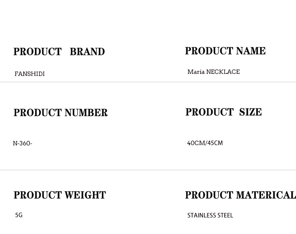FQAВ1: что такое нержавеющая сталь?A1: нержавеющая сталь-это высококачественный металл, устойчивый к высоким температурам, не легко выцветает, не вызывает аллергию и имеет относительно высокую стоимостьВ2: выцветает ли ювелирное изделие или станет черным?A2: ювелирные изделия изготовлены из высококачественной нержавеющей стали и не выцветаютВ3: из каких материалов изготавливаются золотые украшения?A3: золотые Драгоценности изготовлены из нержавеющей стали и покрыты настоящим золотом 18KВ4: будет ли ожерелье выцветать при воздействии воды?А4: это ожерелье не боится воды