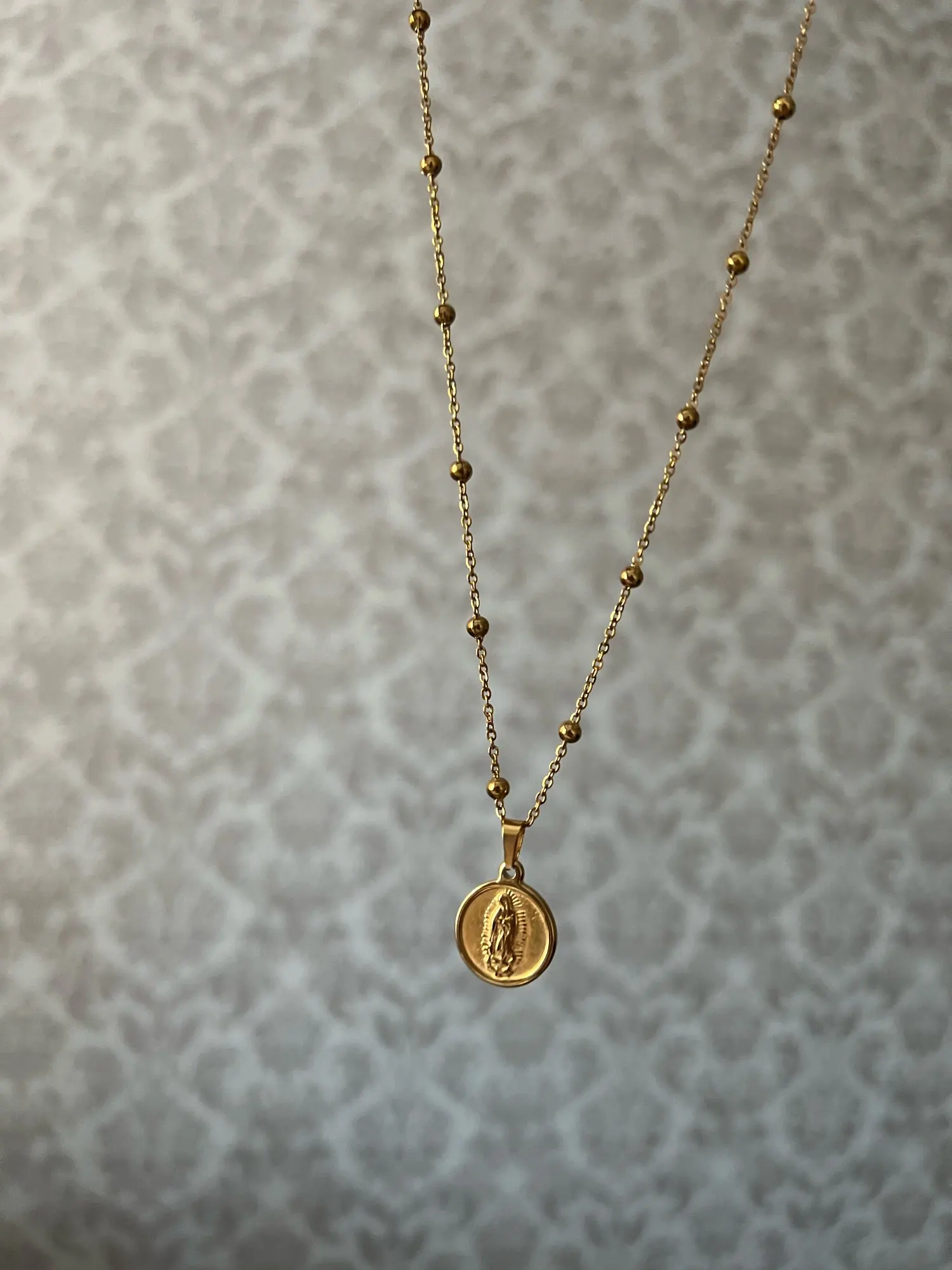 Ожерелье многослойное золотистое с подвеской в виде месяца, карты мира