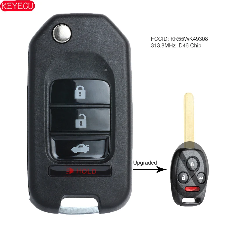 Обновленный флип-ключ KEYECU Remtoe для Honda Accord Sedan Pilot 2008 2009 2010 2011 2012 2013 2014 2015 FOB FCCID: KR55WK49308