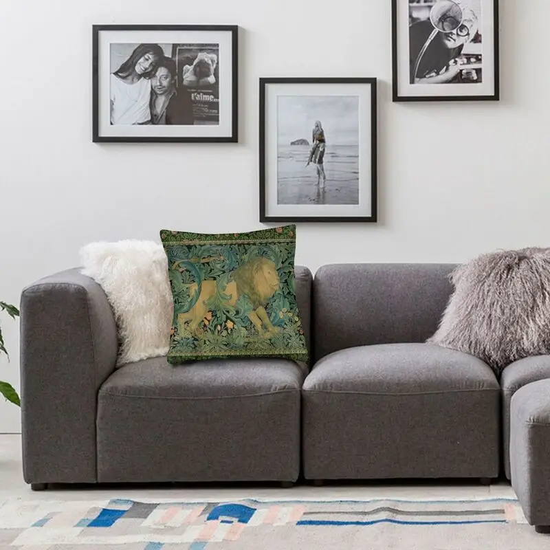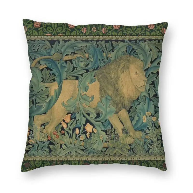 Квадратная наволочка с изображением лесных животных Вильяма Морриса, домашний декор, антикварные подушки с Львом, наволочка для гостиной