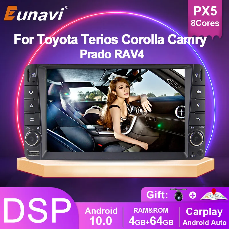 Автомагнитола Eunavi 2 Din, мультимедийный проигрыватель, GPS, для Toyota, Terios, Hilux, VIOS, Old Camry, RAV4, Land Cruiser, Prado 2000 - 2008