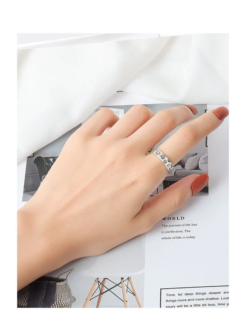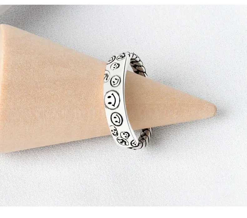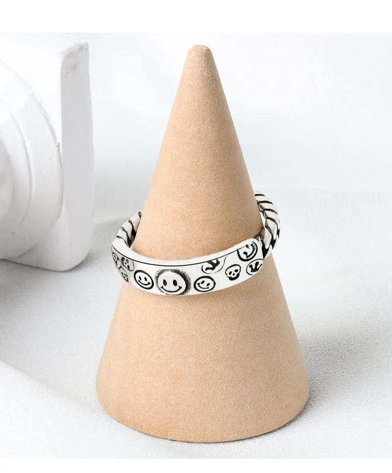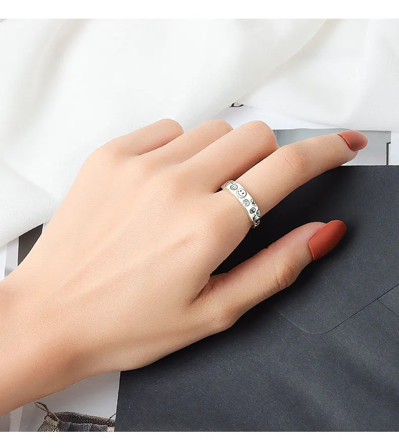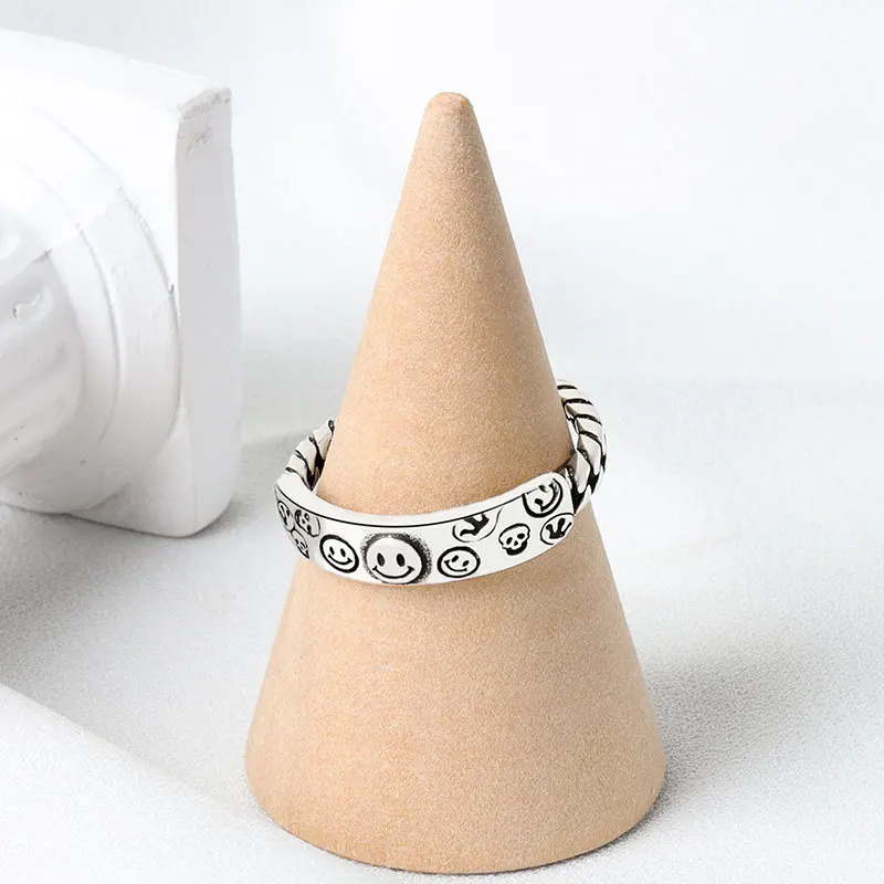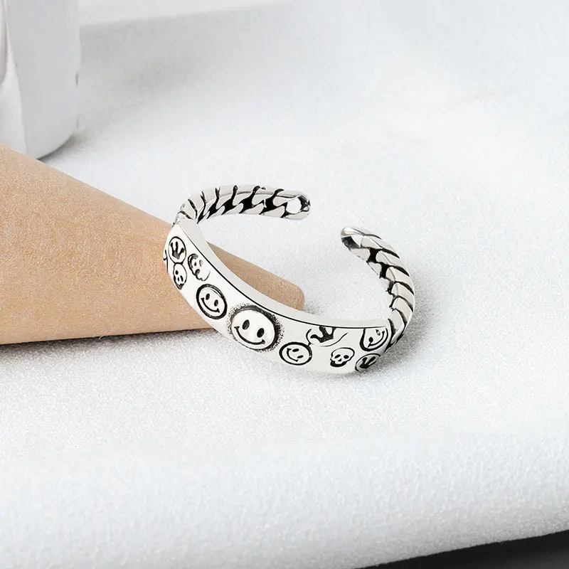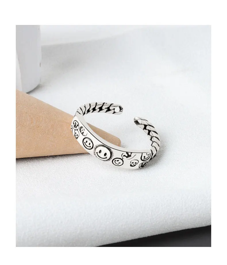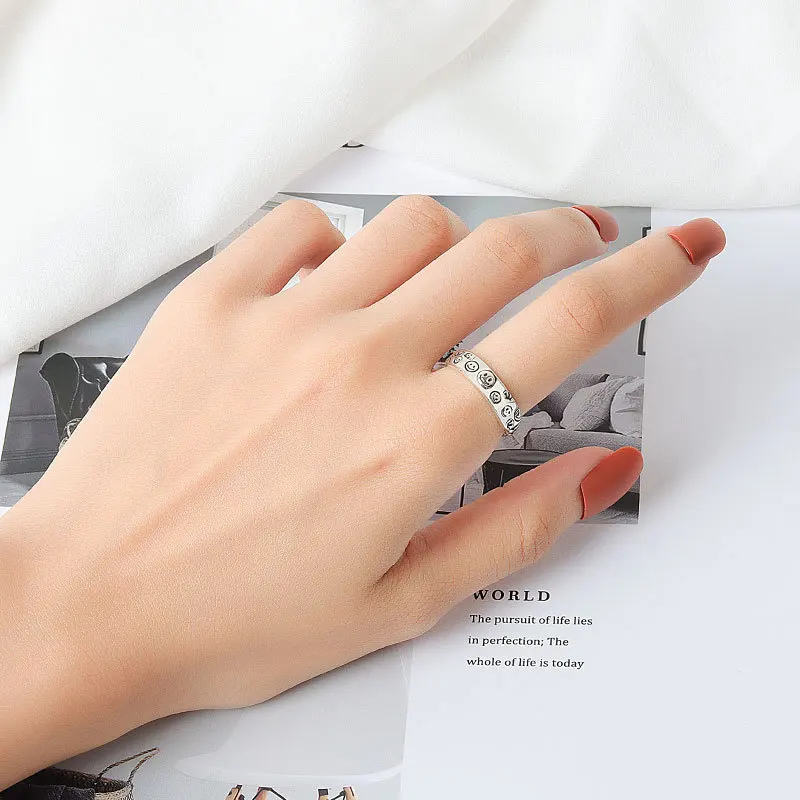 Женское кольцо со смайликом, регулируемое кольцо в стиле ретро