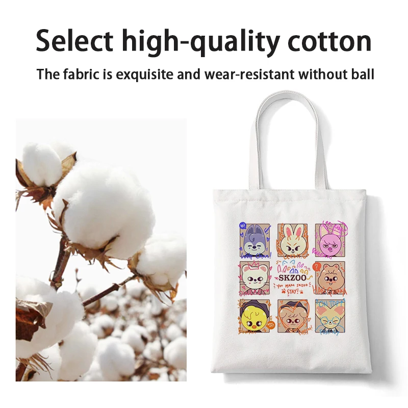 SkZoo Stray Kids Корейская комбинированная Холщовая Сумка для покуп...