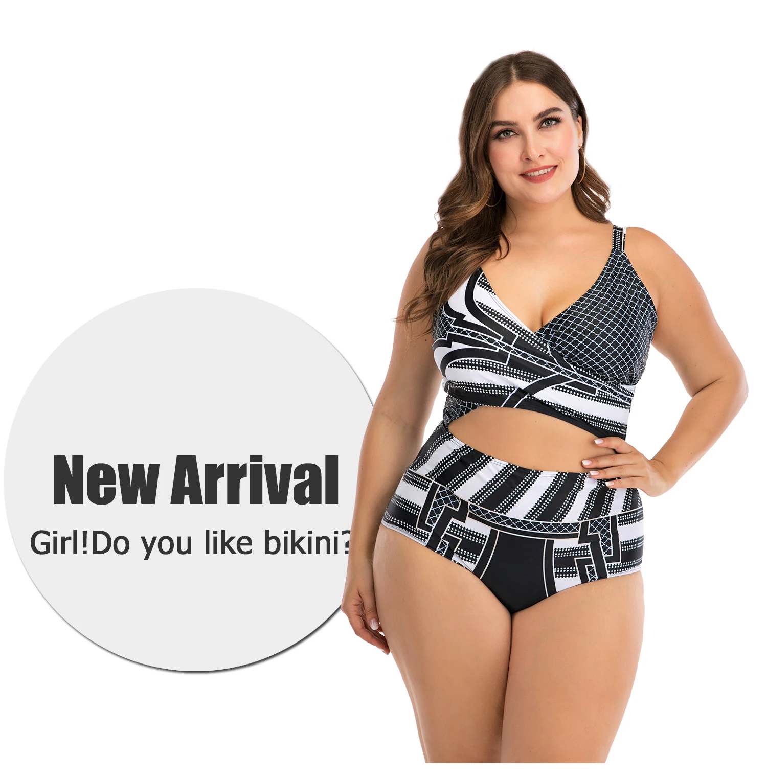Большой Размеры купальники Для женщин геометрическим принтом Горяча...
