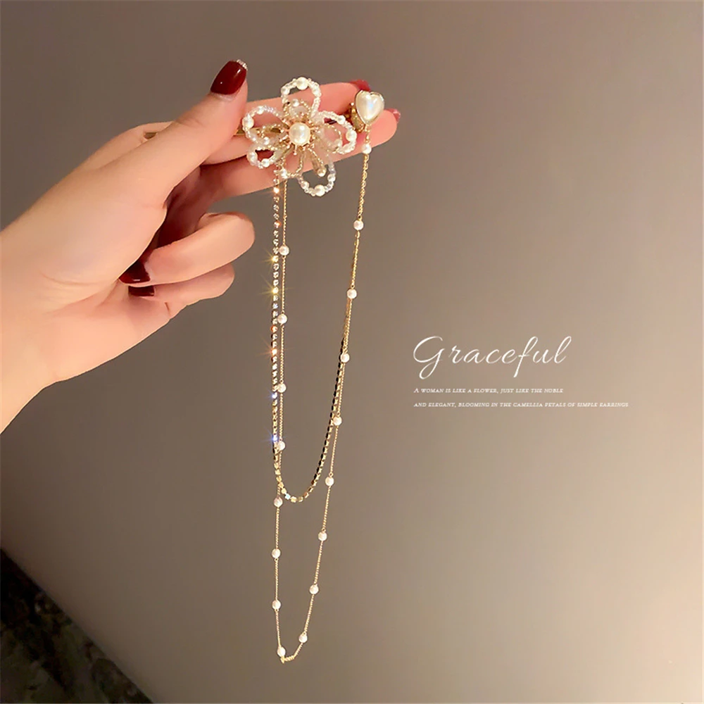 Серьги-клипсы для волос, с бриллиантами и жемчугом