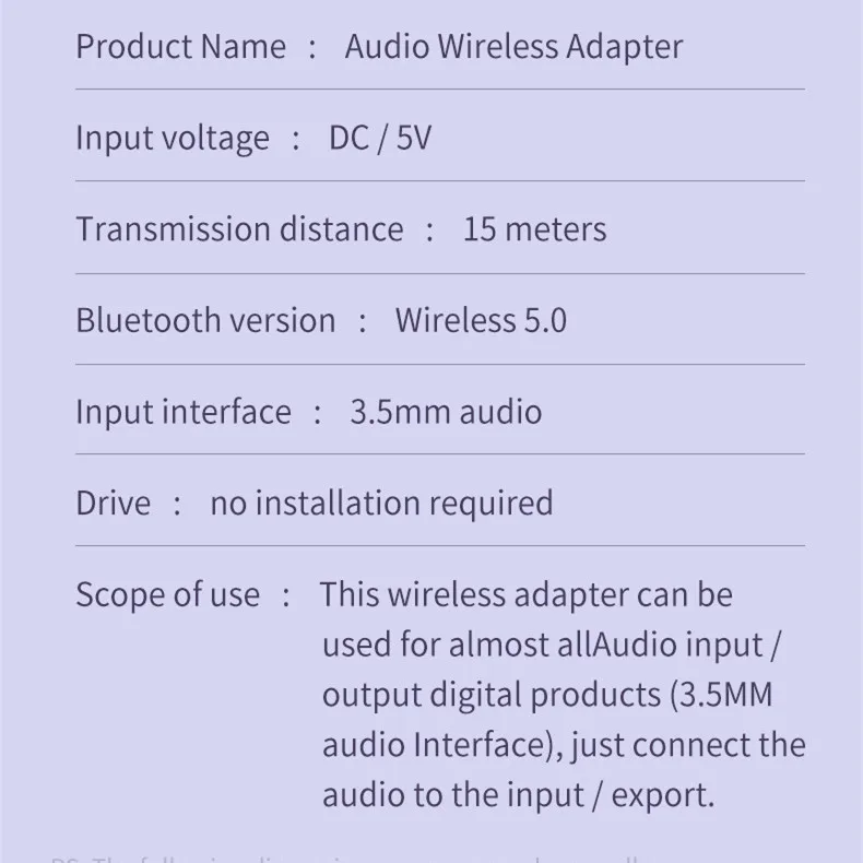 5. Широкая совместимость: с прилагаемым кабелем 3,5 мм этот адаптер передатчика приемника может широко использоваться в вашем автомобиле, компьютере, ноутбуке, домашней стереосистеме, наушниках, смартфоне, MP3-плеере, CD-плеере, И т. Д.
