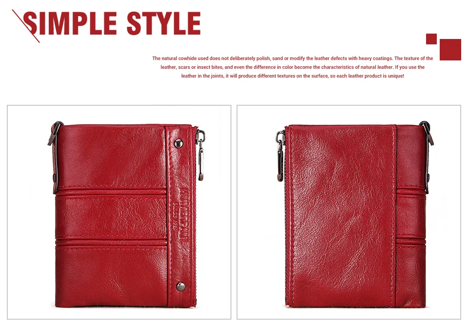 Модный женский кошелек из натуральной кожи 2021, бумажники двойного сложения, красная визитница, кошелек для монет с двойной молнией, Маленькая женская сумка для денег