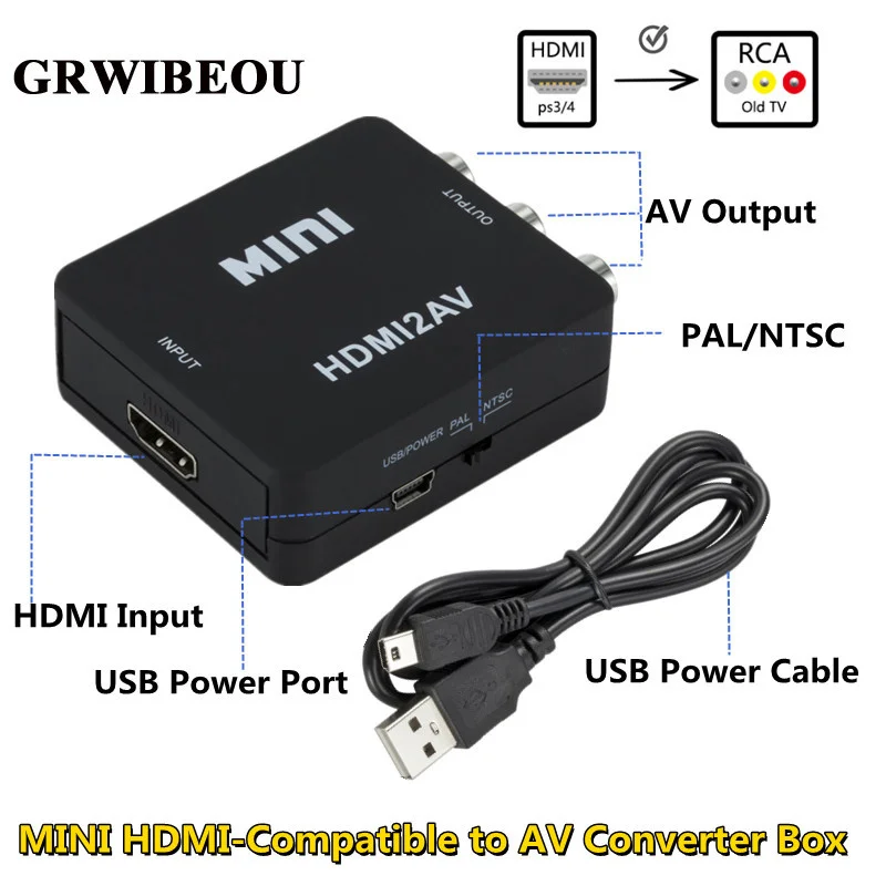 Адаптер-преобразователь HDMI-совместимый с AV, HD-видео композитный преобразователь HD в RCA AVCVSB LR, видео 1080P, поддержка NTSC PAL