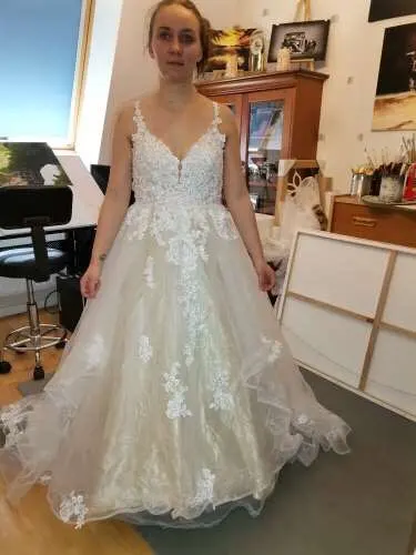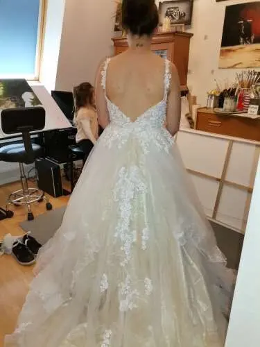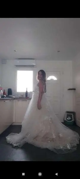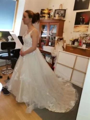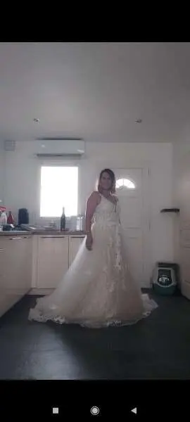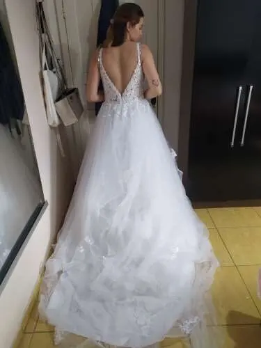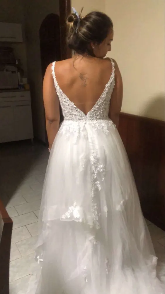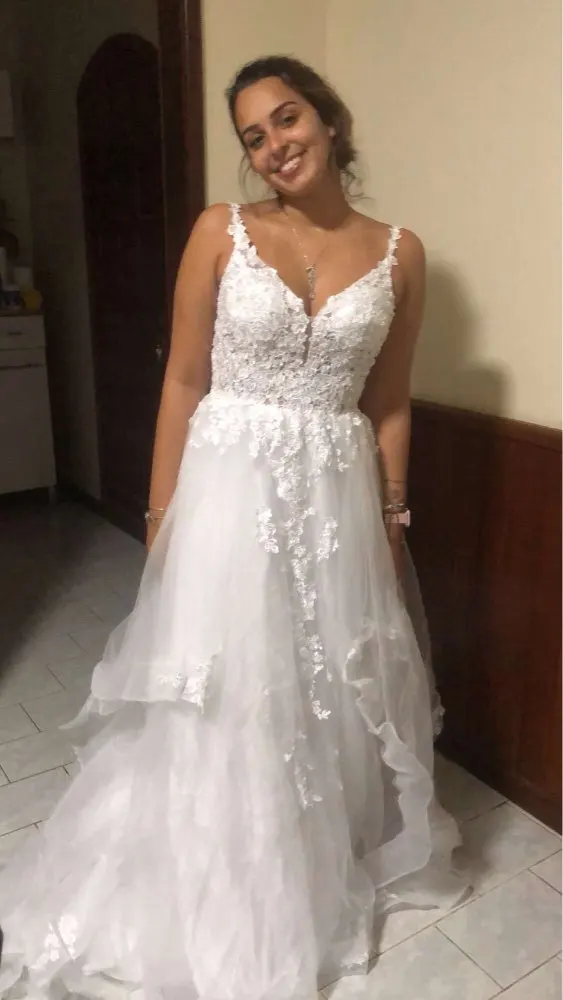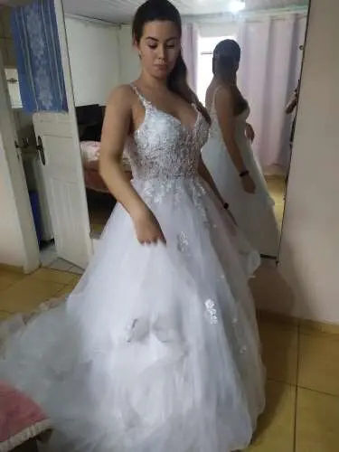 O vestido é perfeito!!! Exatamente como nas fotos. O tecido é muito bom e grosso. As rendas e os bordados s?o de muita qualidade. Mandei fazer com as minhas medidas e chegou perfeito, somente 3 centímetros maior, mas n?o tem problema. muito obrigado vendedor