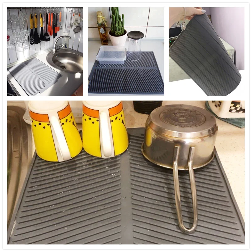 Силиконовый квадратный коврик для сушки посуды, термостойкий Коврик для сушки посуды, прочная подушка, коврик для столовой посуды