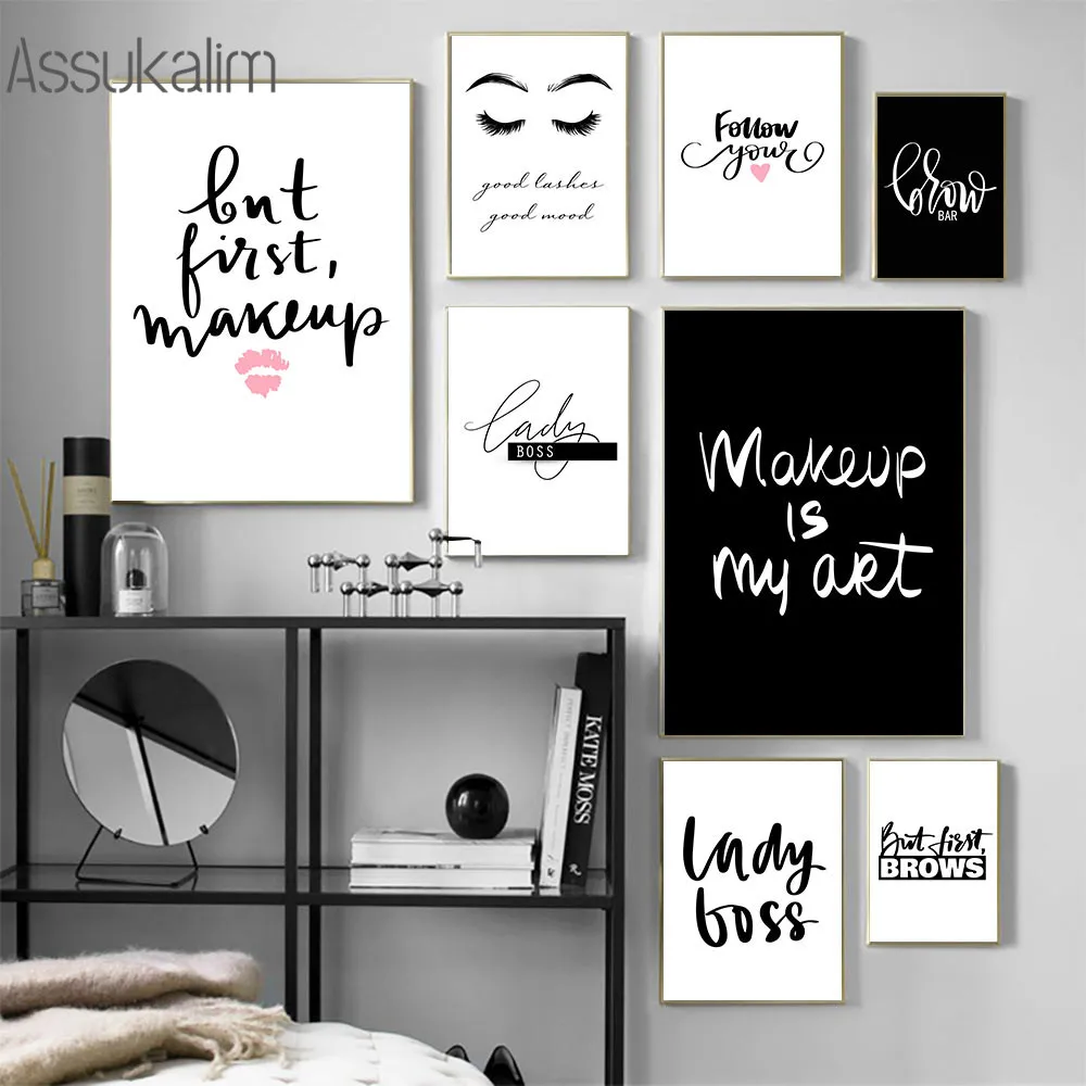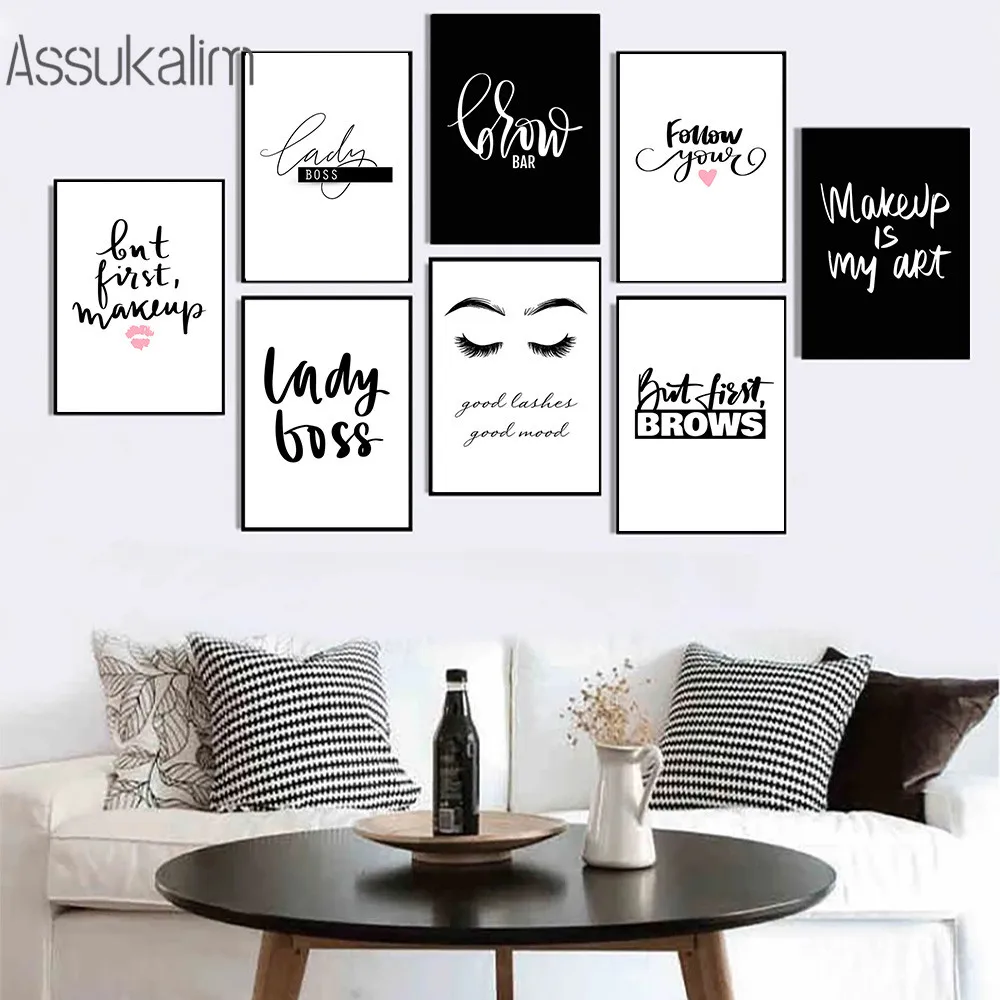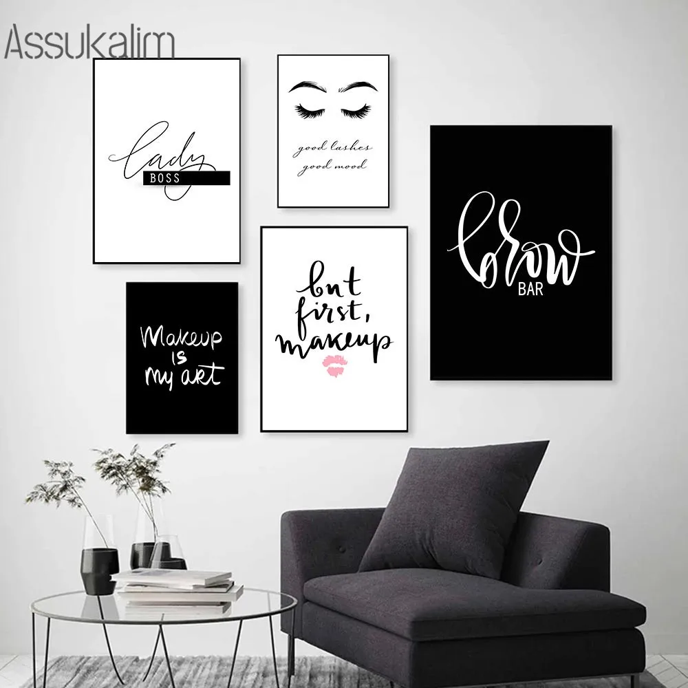 Плакаты для макияжа с изображением черно-белых ресниц картина с цит...