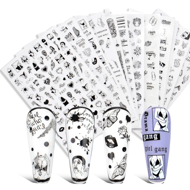 1 шт в форме сердца, с рисунком в виде букв 3D ногтей Стикеры абстрактный сексуальная леди геометрический ползунок для ногтей ко Дню Святого Валентина, нейл-арта украшения