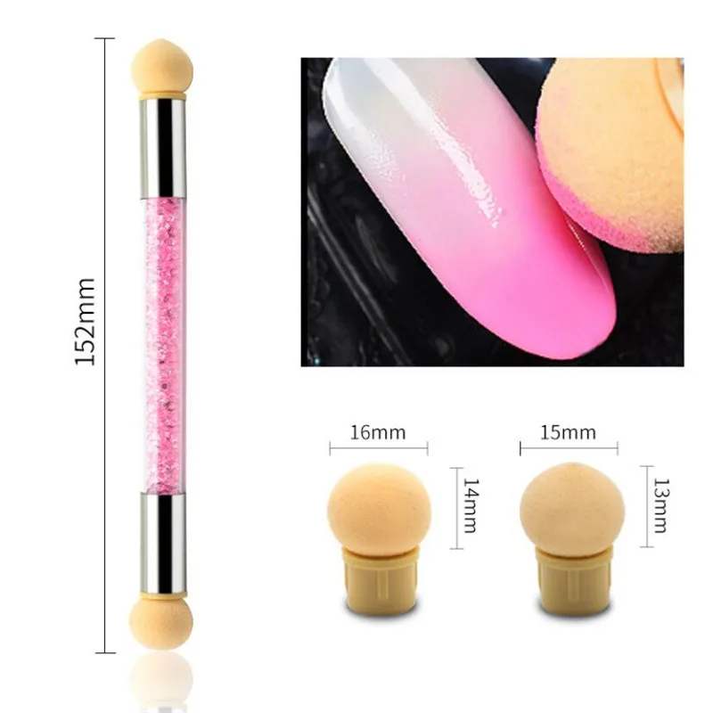 Двусторонняя кисть для градиентного затенения, 1 шт., для нанесения точек, губка, головка для стразы, ручка, кисть для дизайна ногтей, инструмент для рисования ногтей