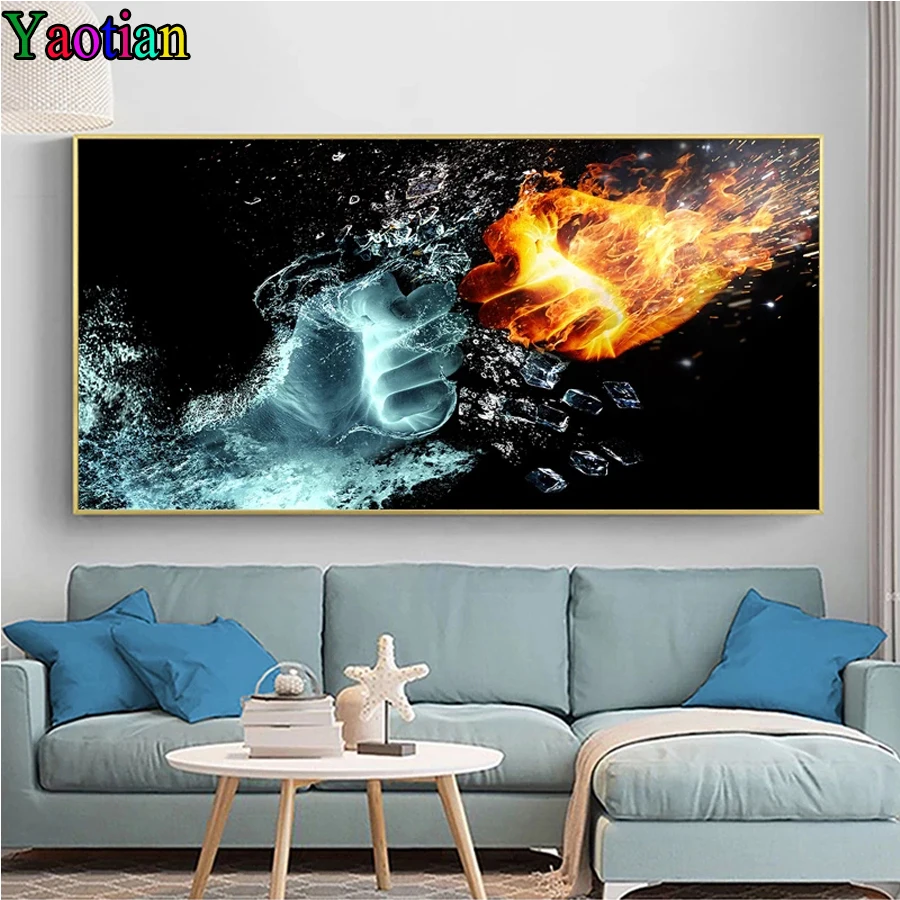 5D алмазная Картина абстрактные руки Алмазная вышивка домашний декор современное искусство полный квадрат/круглая Алмазная мозаика вода и огонь