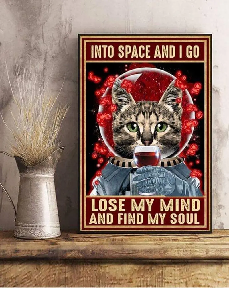 Кот астронавт вино в космосе металлический жестяной знак День Святого Валентина украшение комнаты декор Подарки для женщин