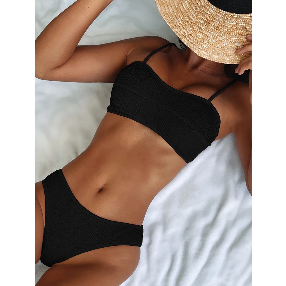 Однотонное бикини в рубчик, новинка 2021, пикантная одежда для плавания, женский купальный костюм, женский комплект бикини из двух предметов, купальные костюмы, пляжная одежда для плавания для женщин