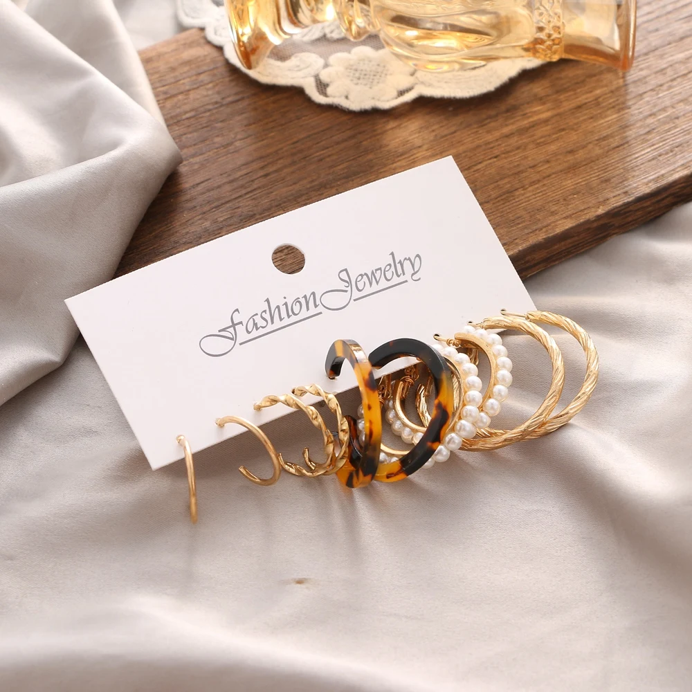 EN винтажные золотые геометрические круглые акриловые набор серег-колец для женщин богемные модные жемчужные необычные серьги оптовая продажа ювелирных изделий